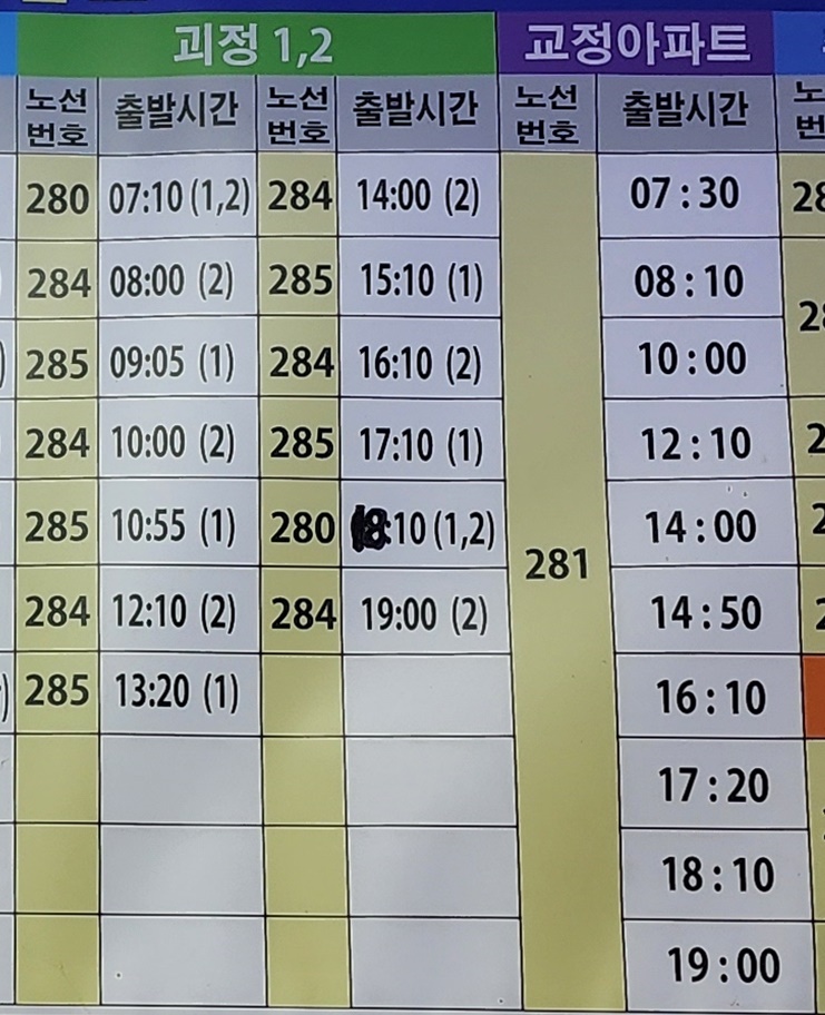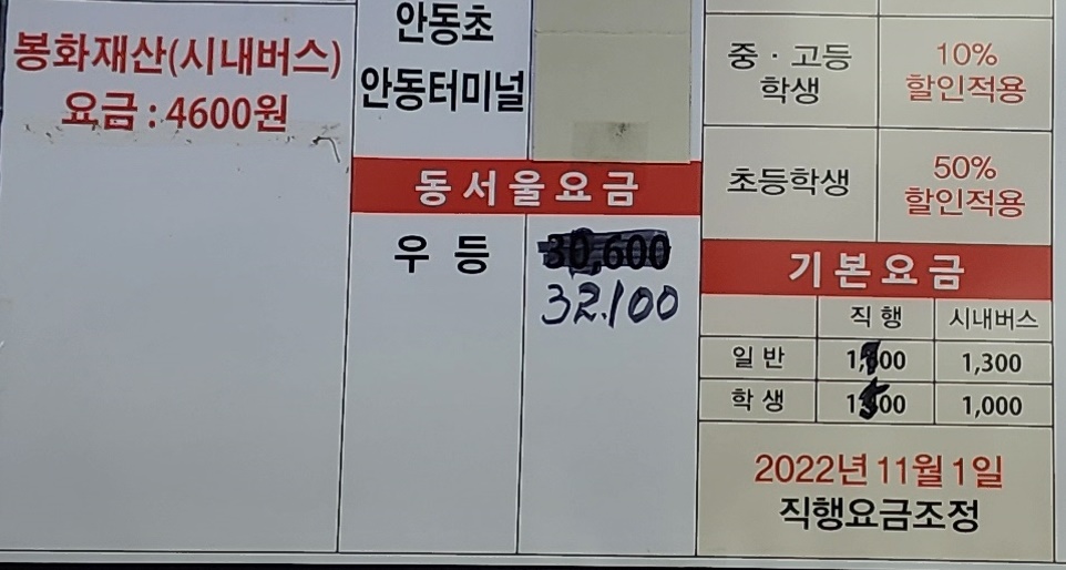 경기여객 안동터미널 출발 진보터미널 도착 시간