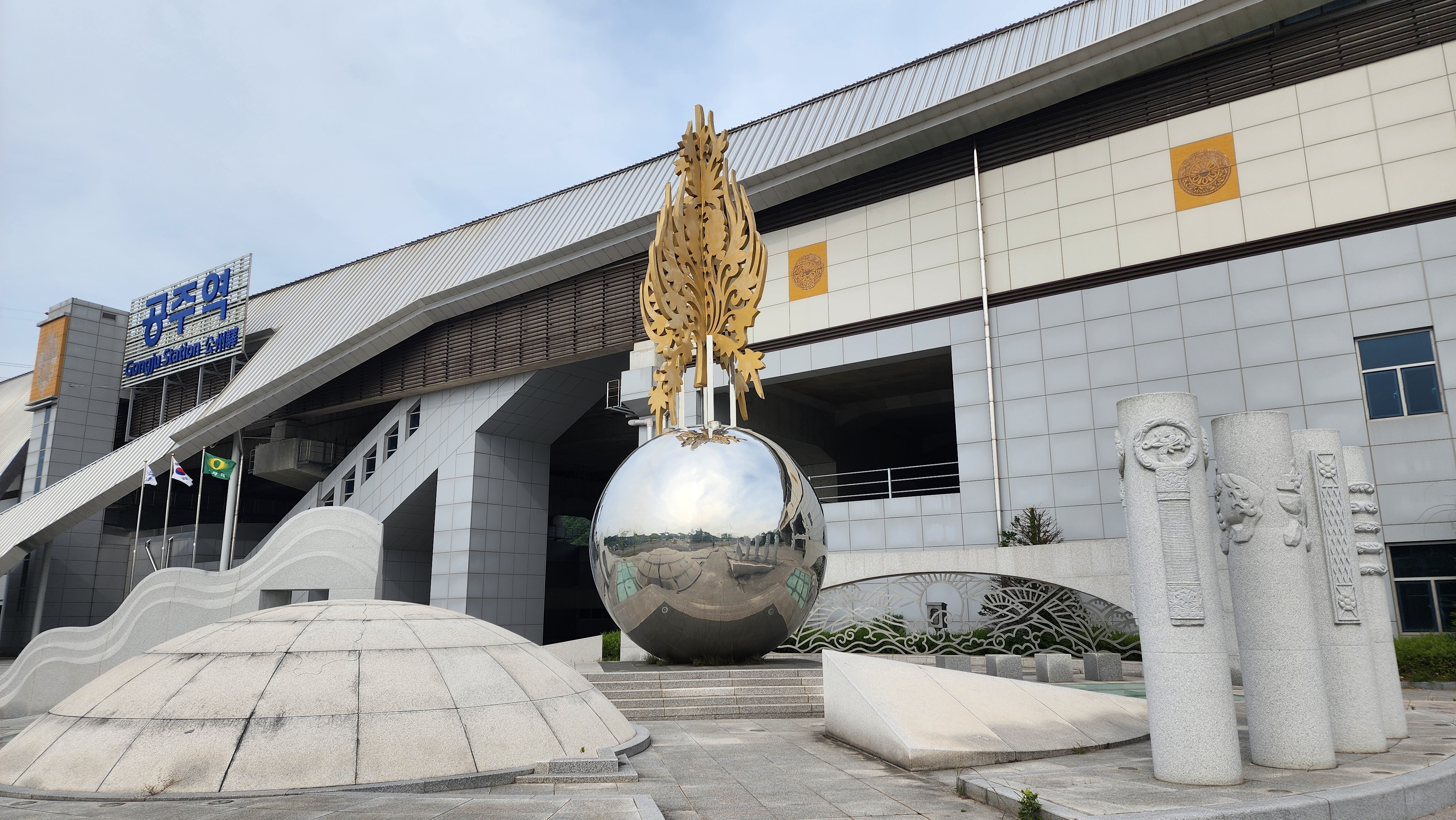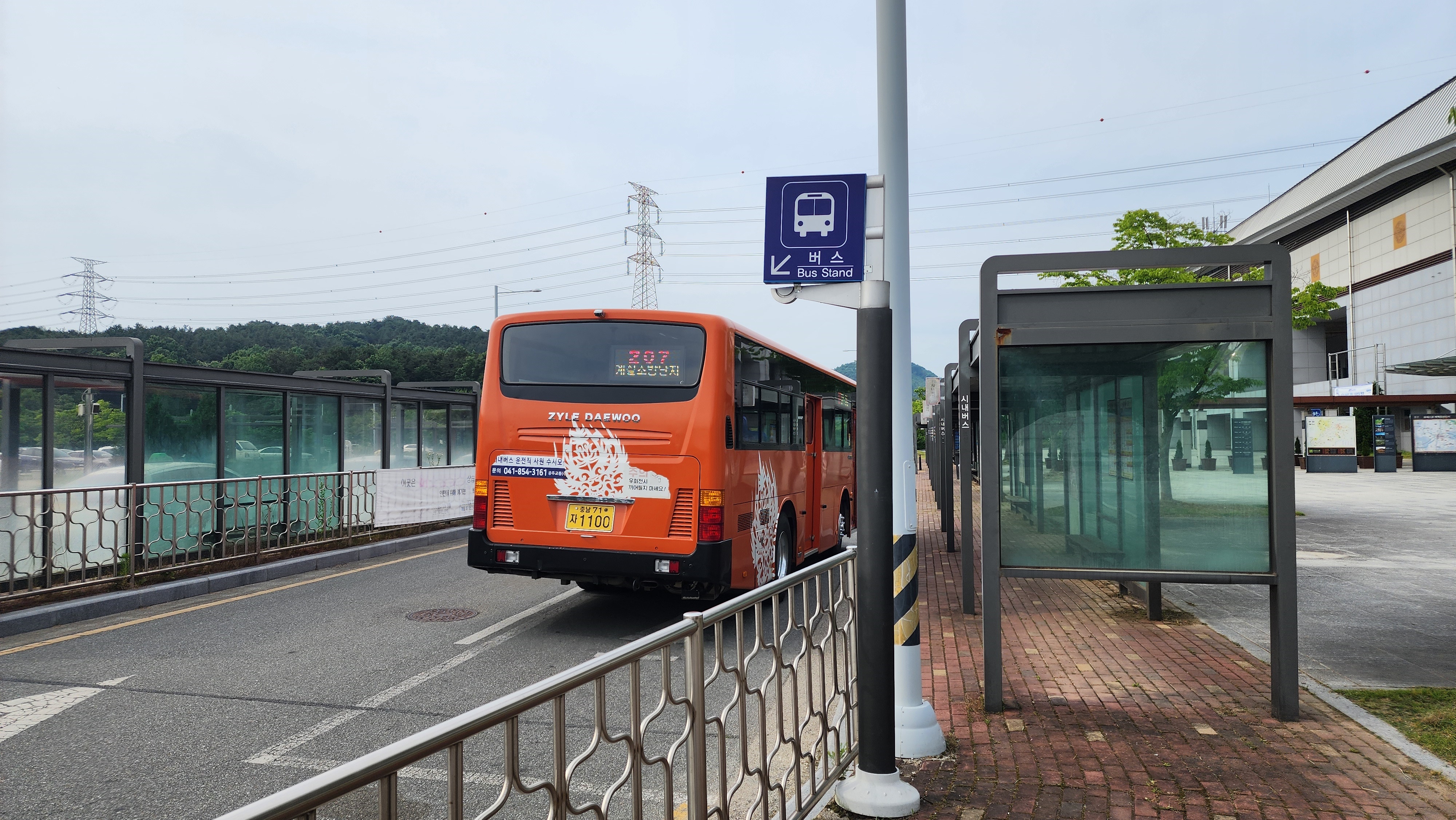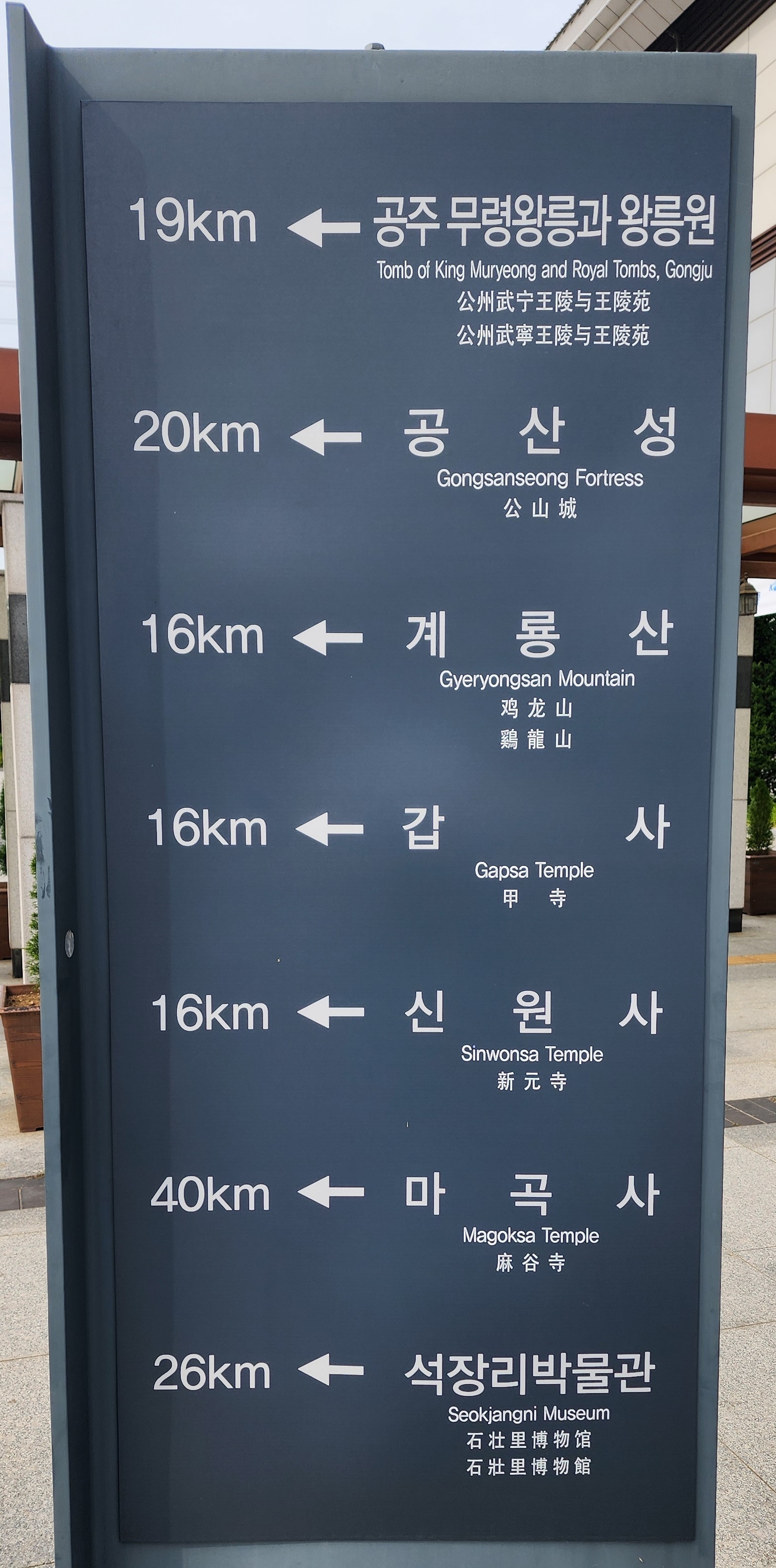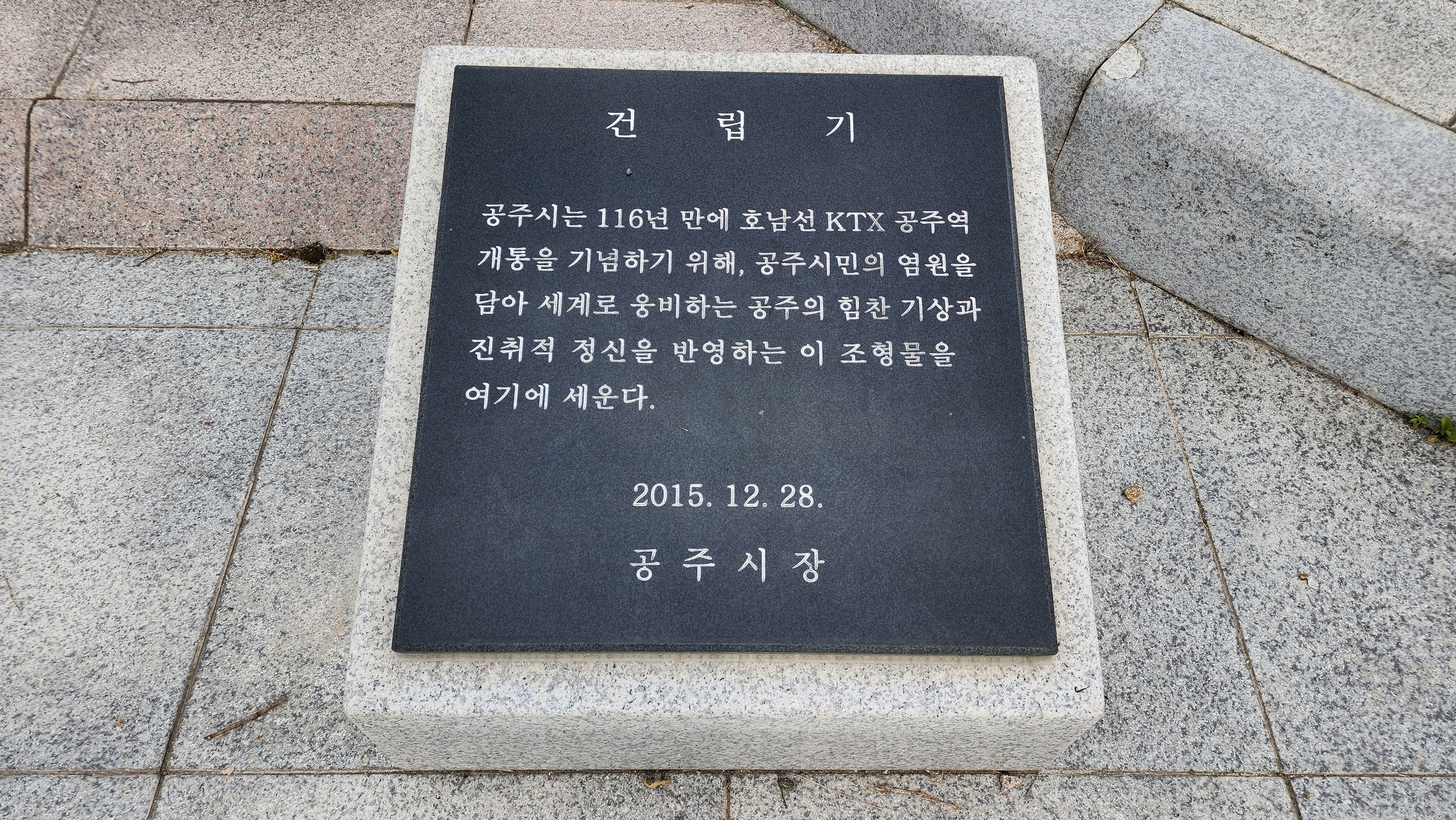 역 광장에는 백제 금관장식과 백제 왕실을 상징하는 대형 조형물이 설치되어 있으며,
