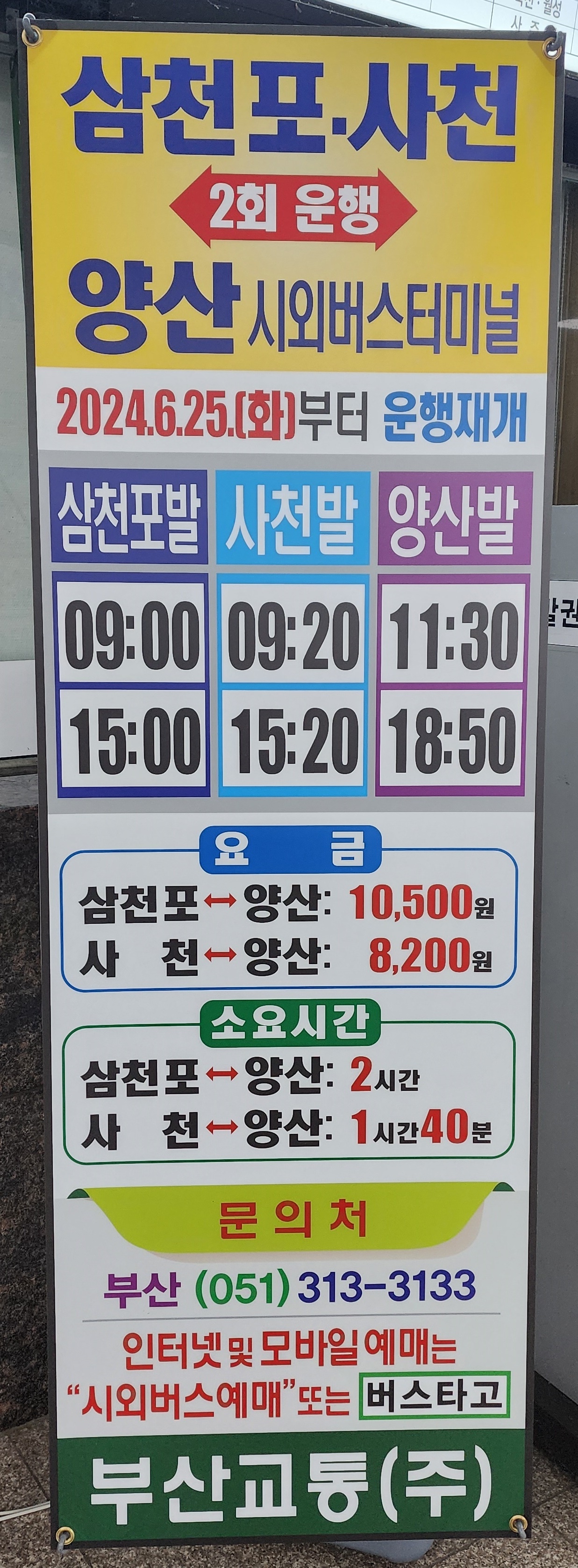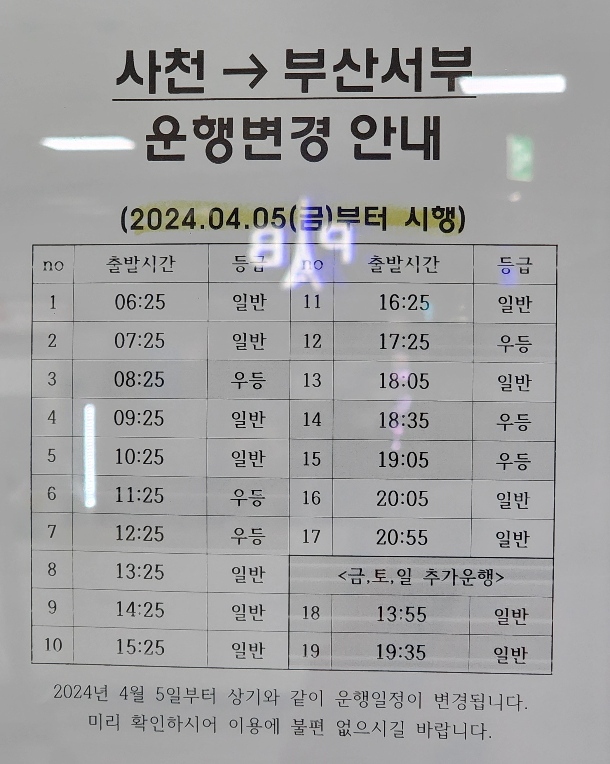 사천 출발 부산서부 운행 변경안내