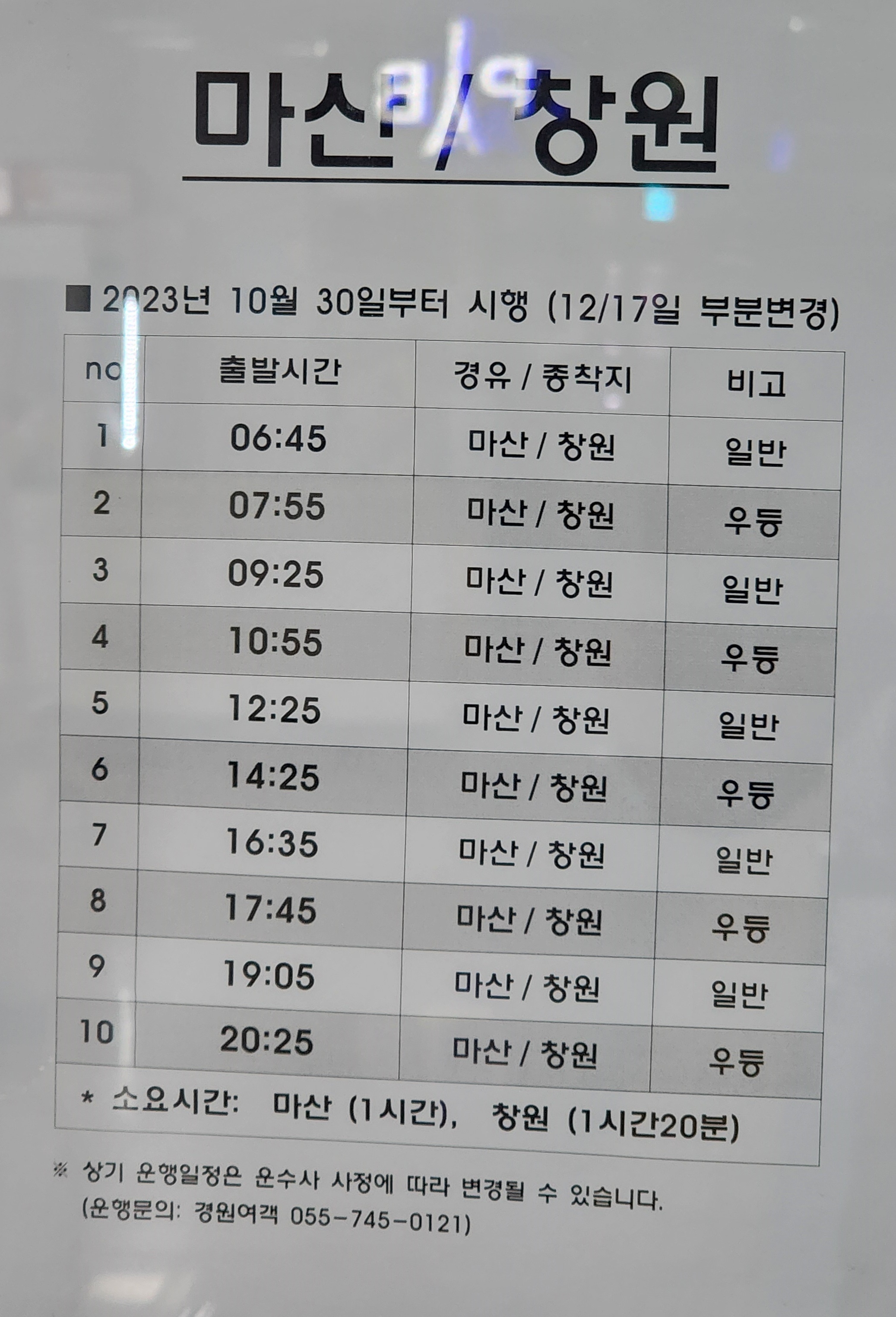 사천 출발 마산, 창원 시간표