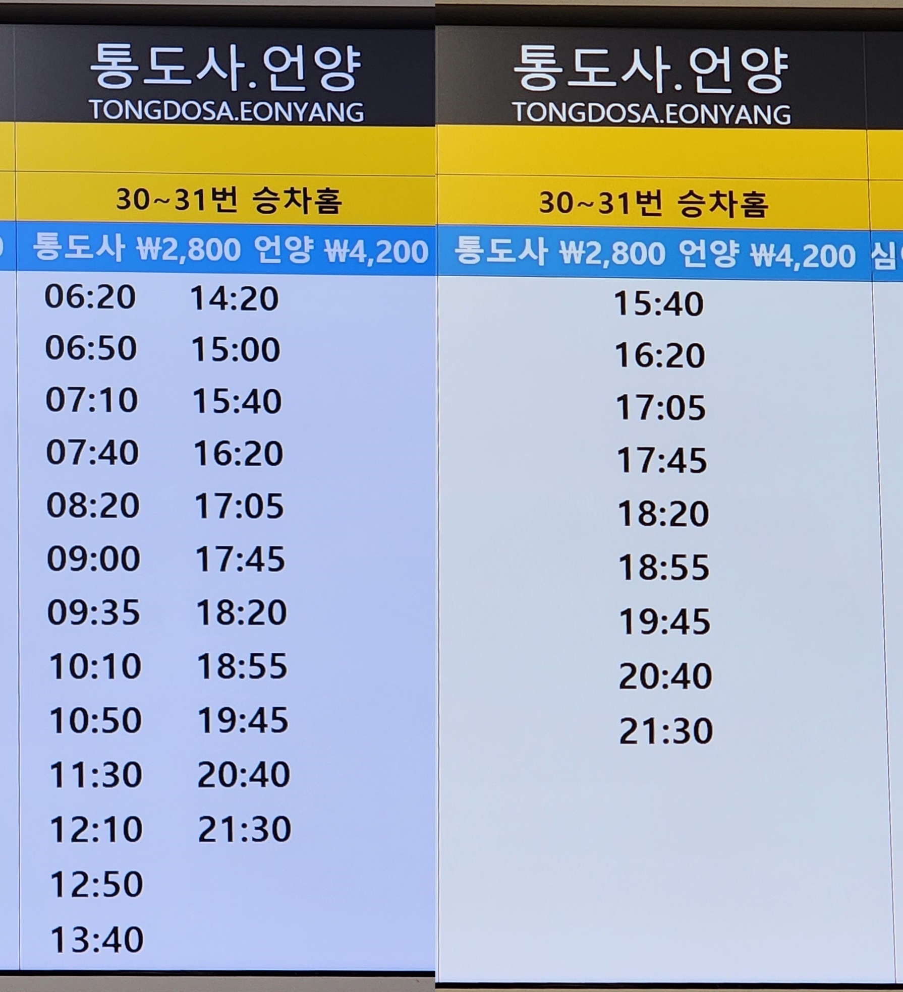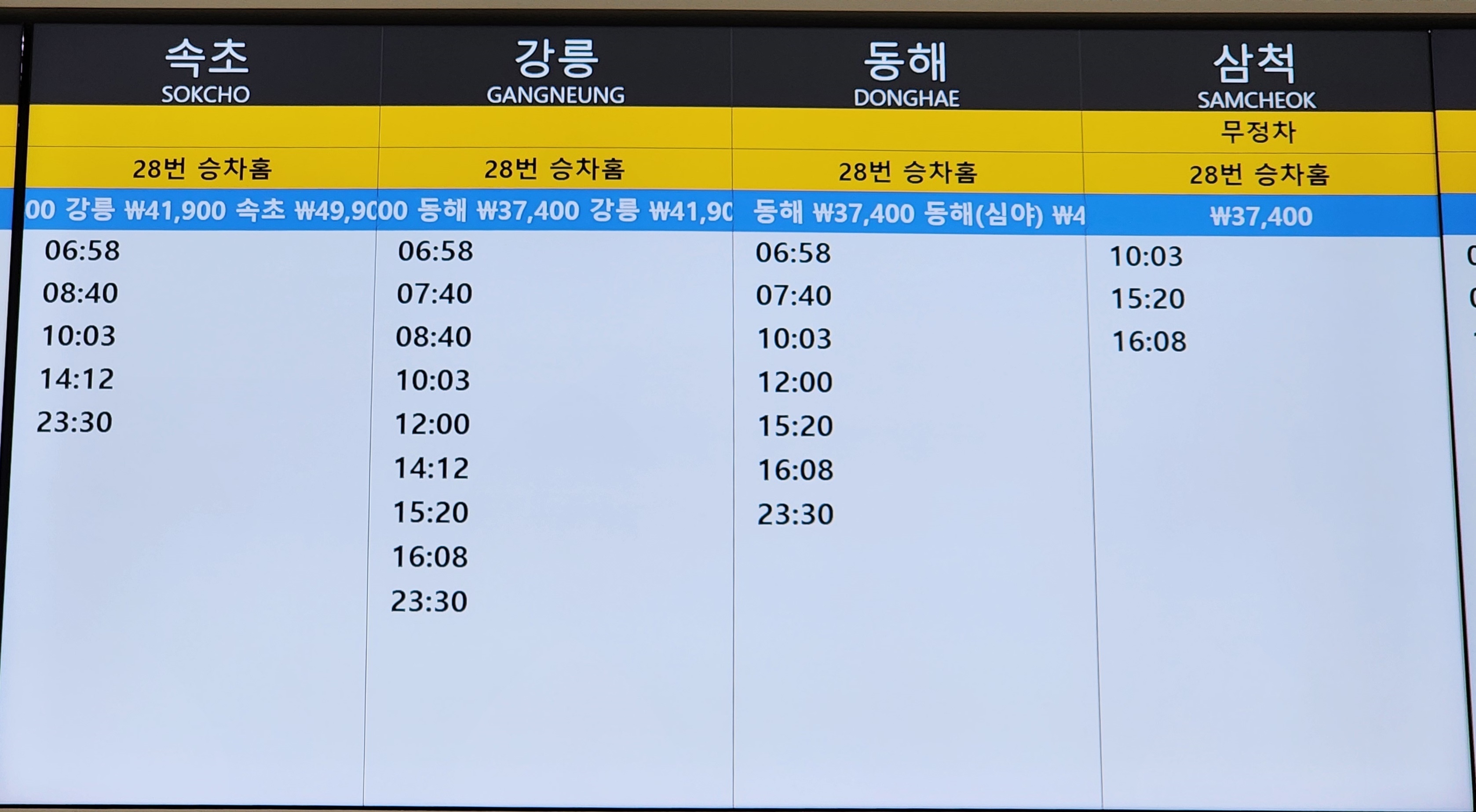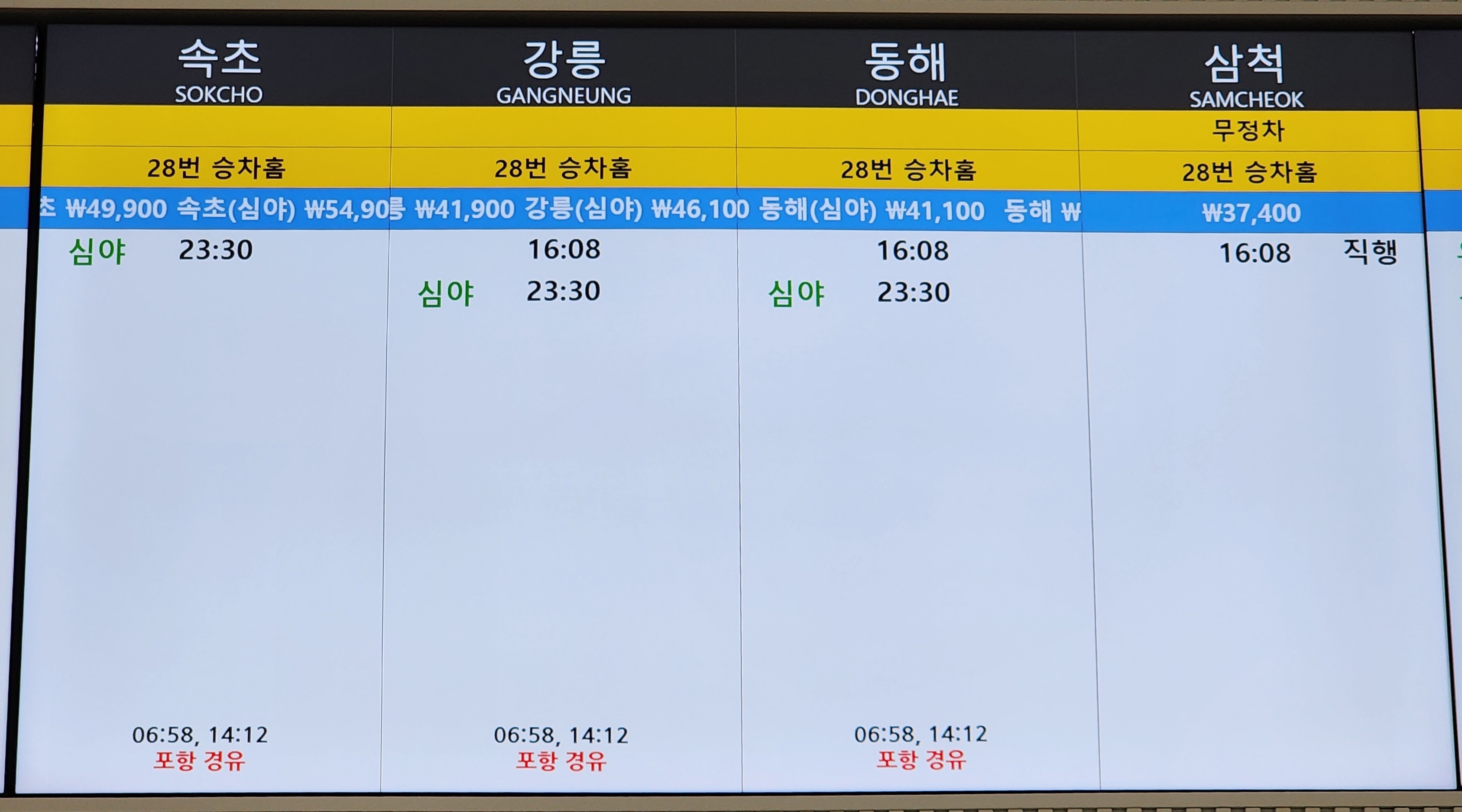 노포 출발 속초, 강릉, 동해, 삼척 방면.