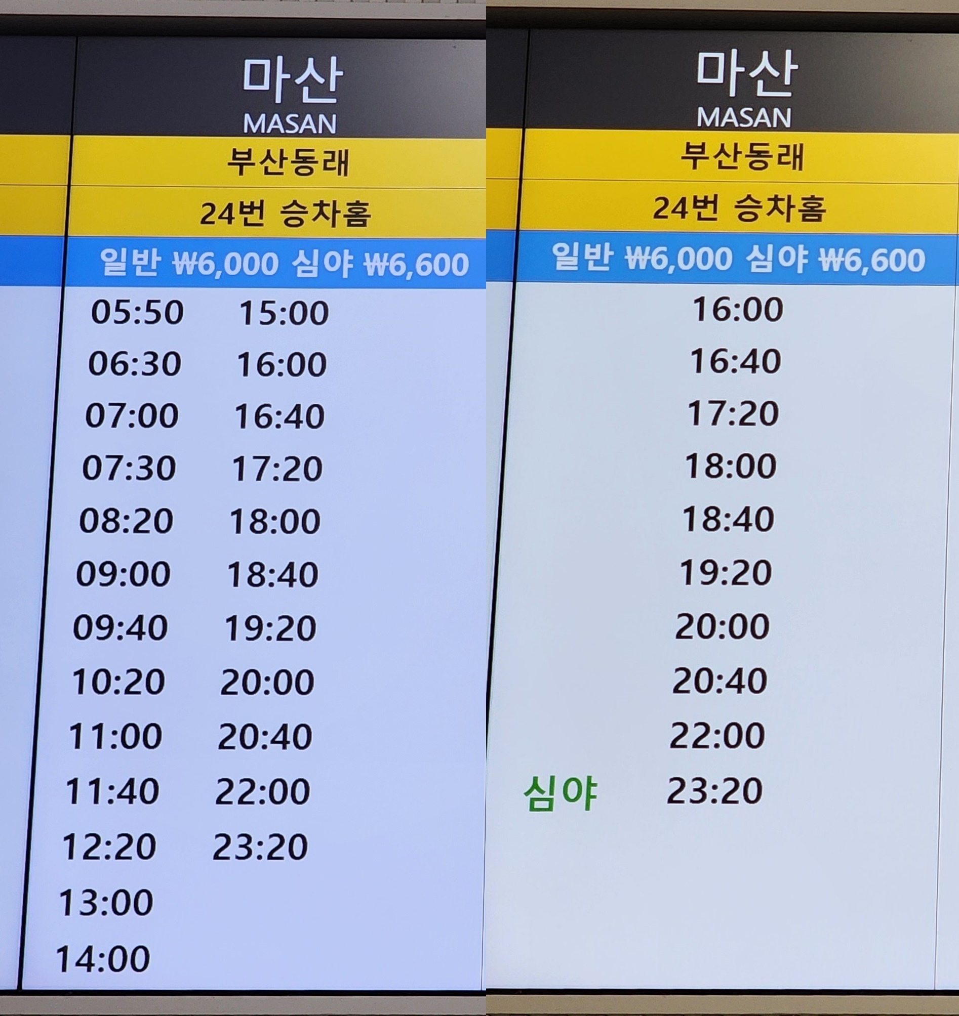 부산고속버스터미널시간표