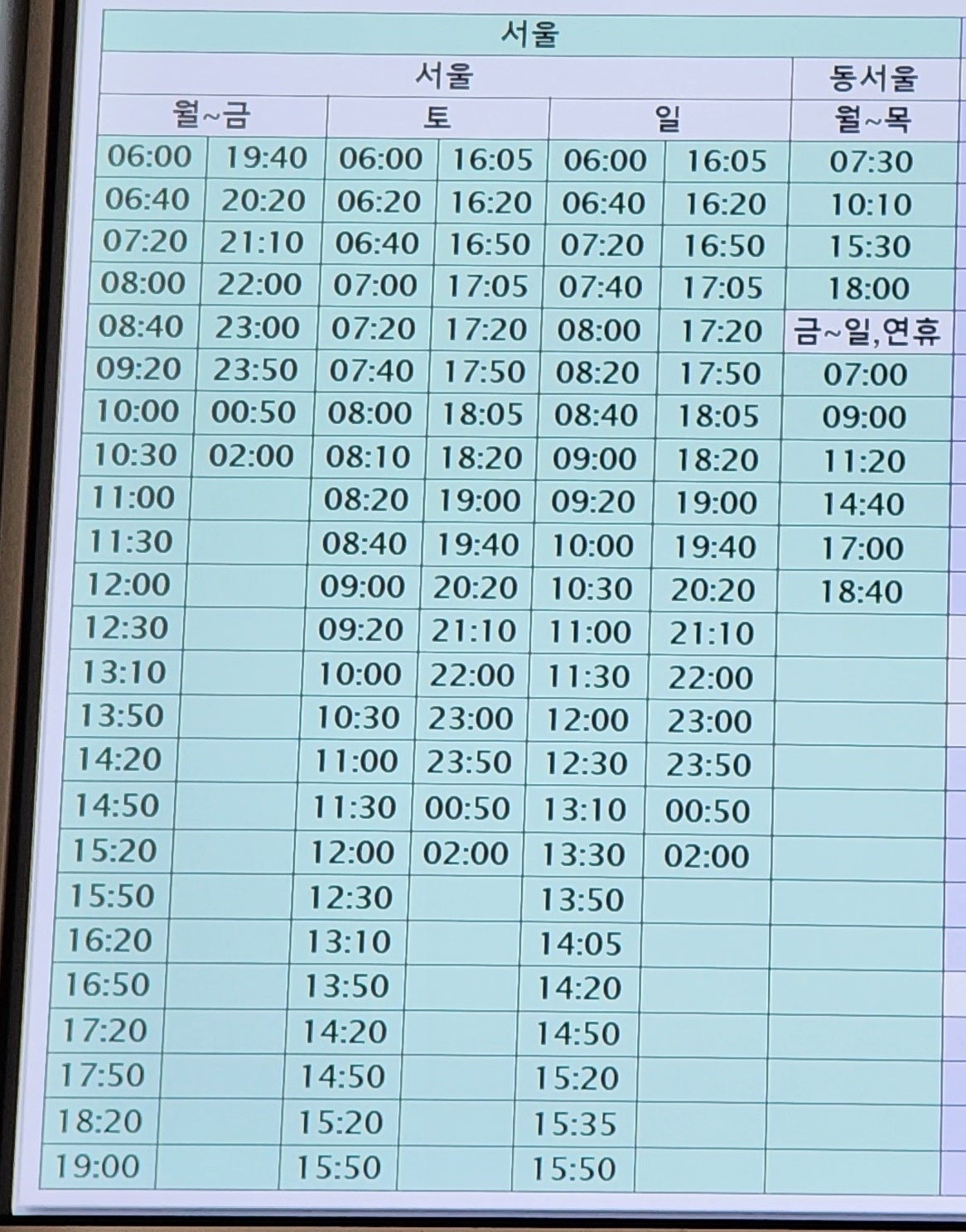 부산 출발 서울 방면.