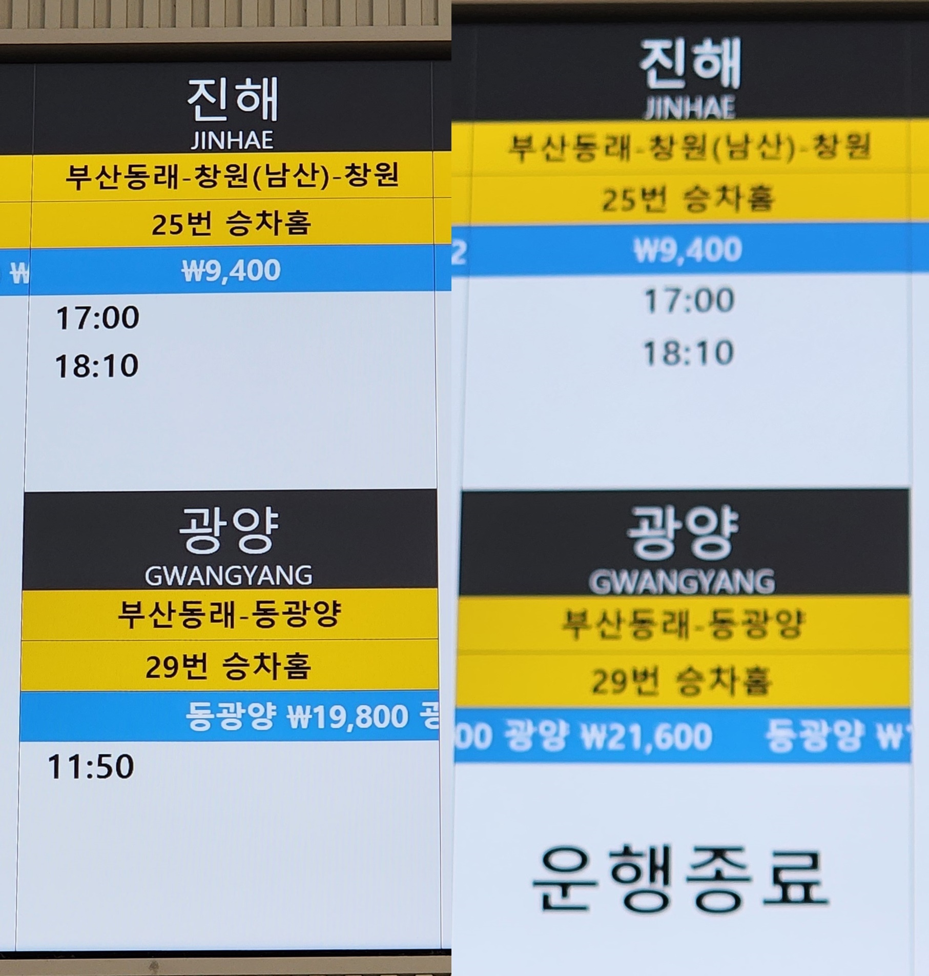 노포시외버스터미널 시간표 부산동부터미널 부산고속버스터미널