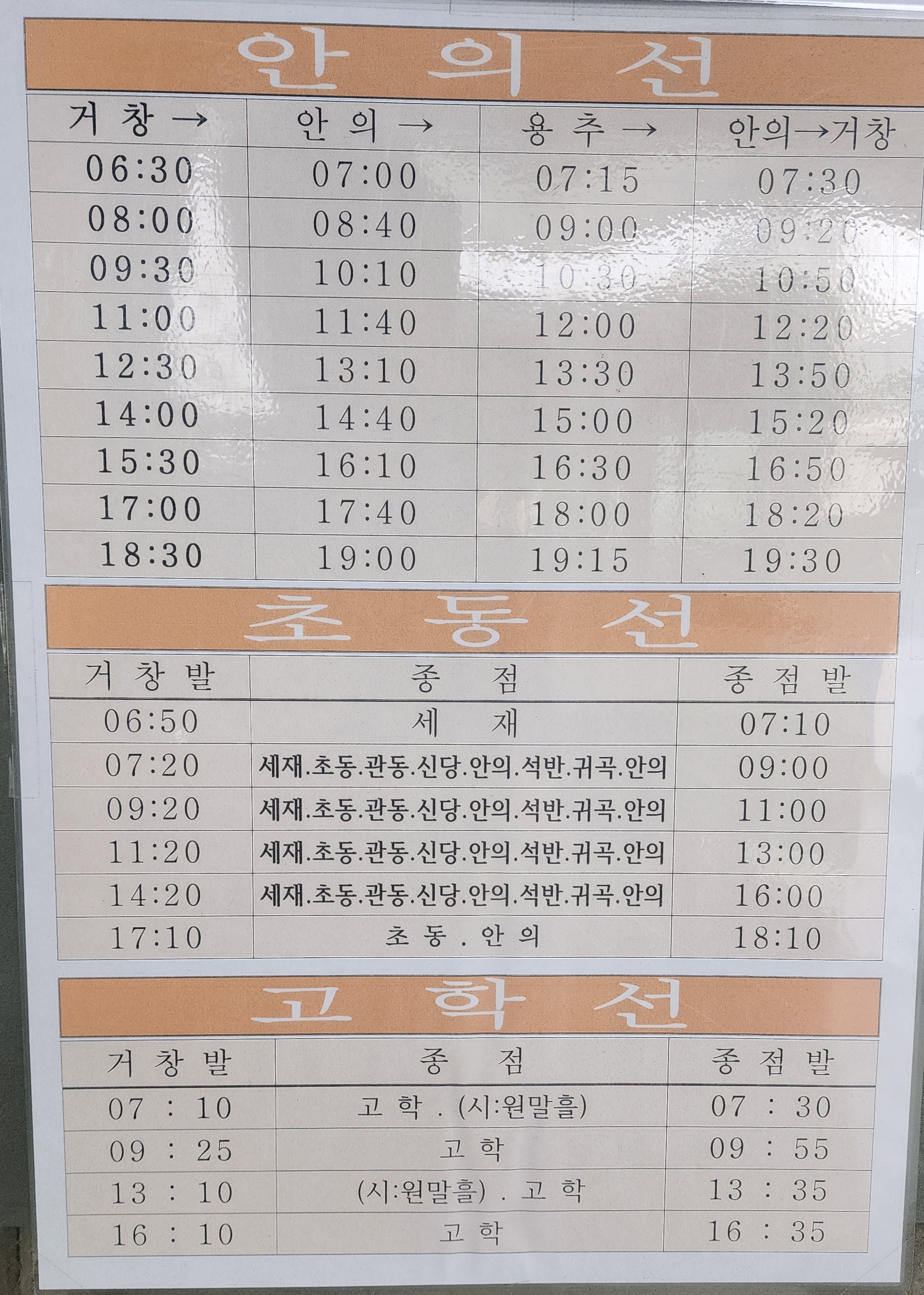 안의선, 초동선, 고학선.