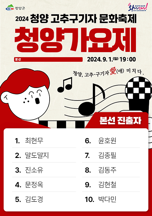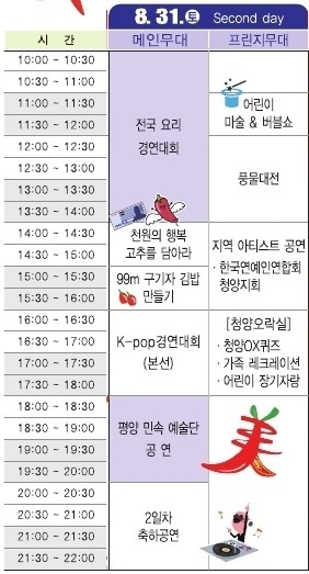 청양고추구기자 문화축제 8.31.(토) 시간표