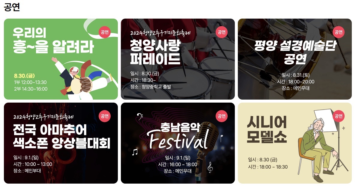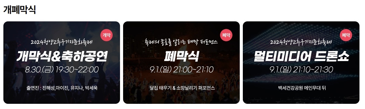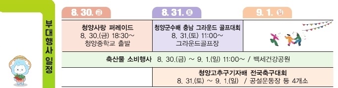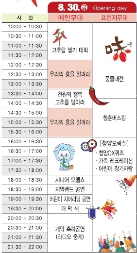 청양고추구기자 문화축제 8. 30.(금) 시간표
