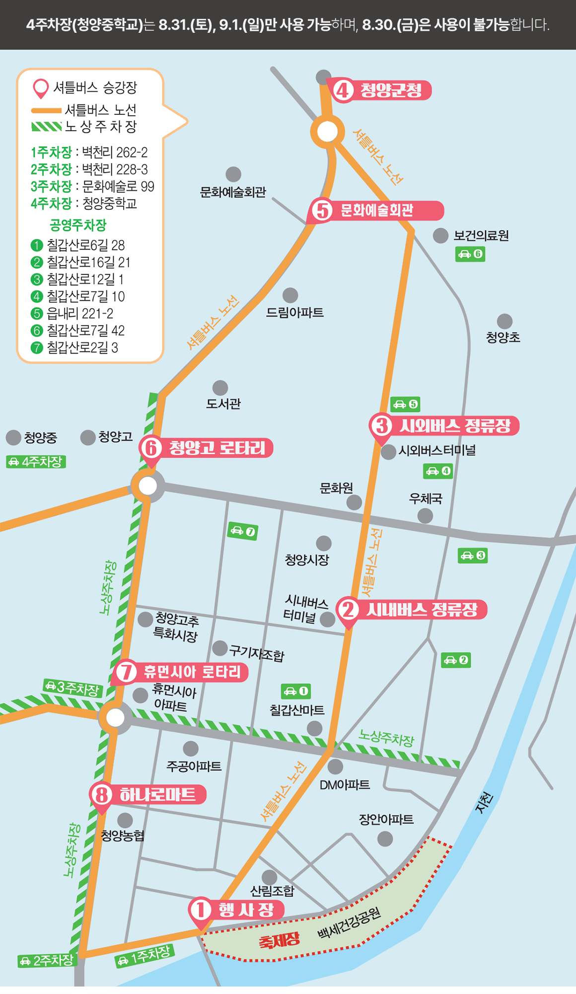 청양고추구기자 문화축제 주차장 & 셔틀버스 안내도
