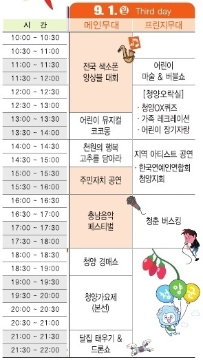 청양고추구기자 문화축제 주요 프로그램 시간표