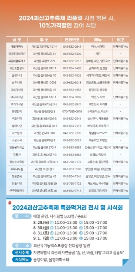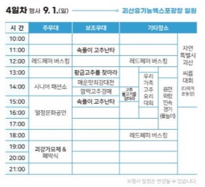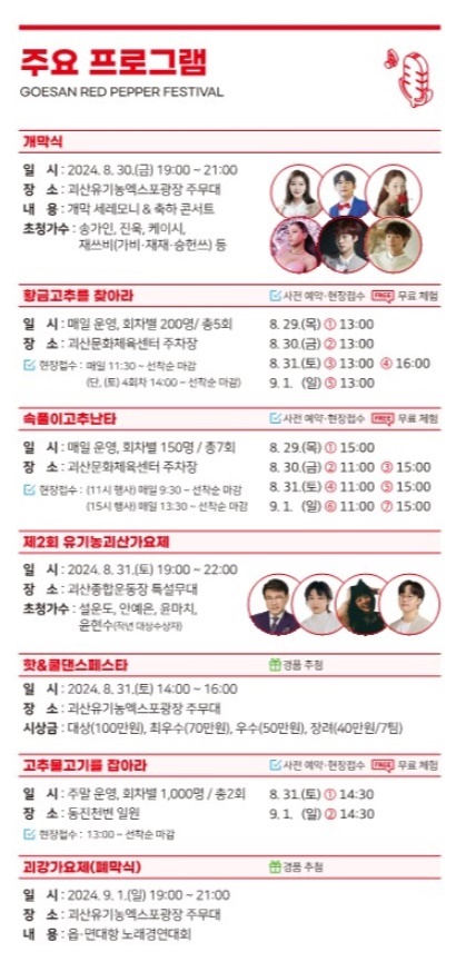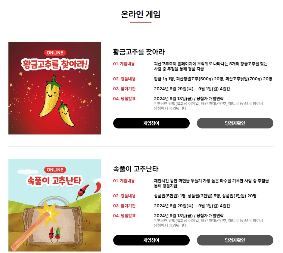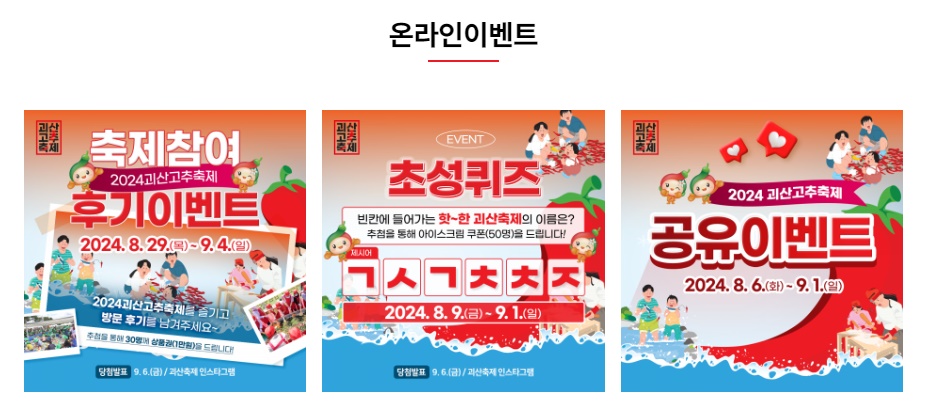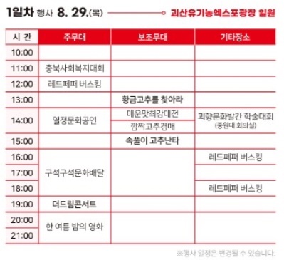 괴산고추축제 온라인 게임 황금고추를 찾아라, 속풀이 고추난타 시간표