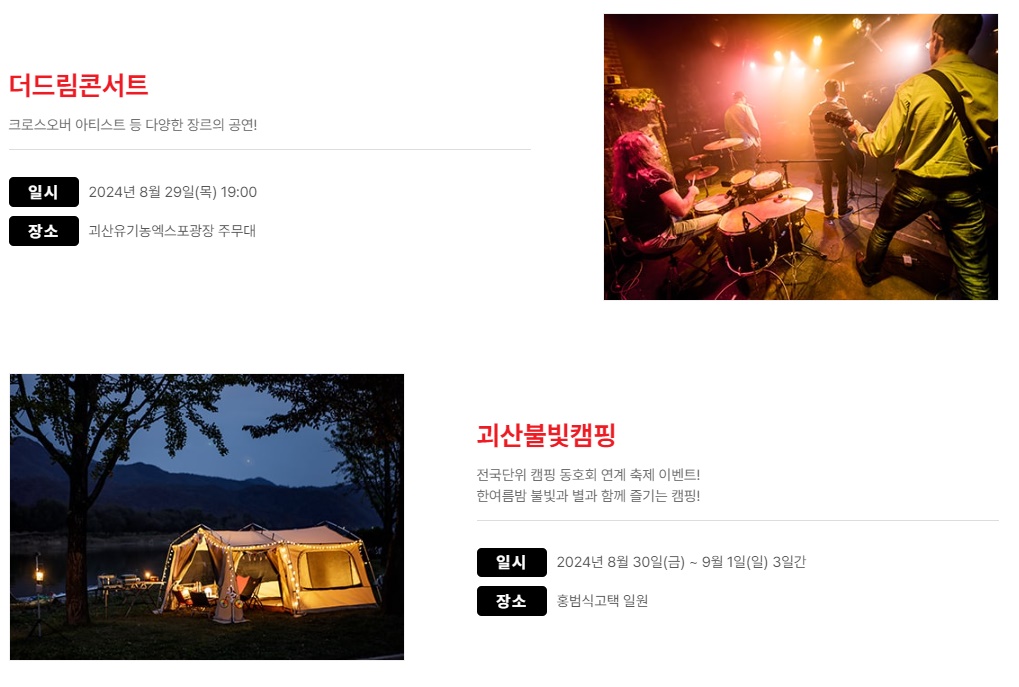 ■ 장소 : 괴산유기농엑스포광장 주무대