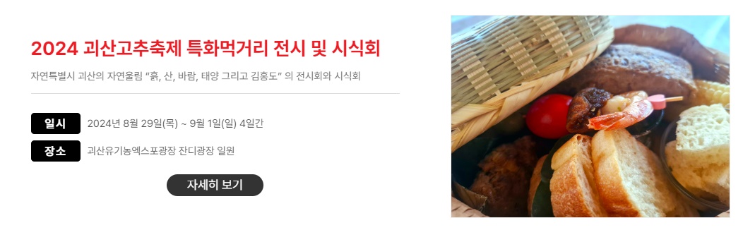 천혜의 자연환경을 자랑하는 유기농의 심장 괴산에서 괴산고추축제를 개최합니다.