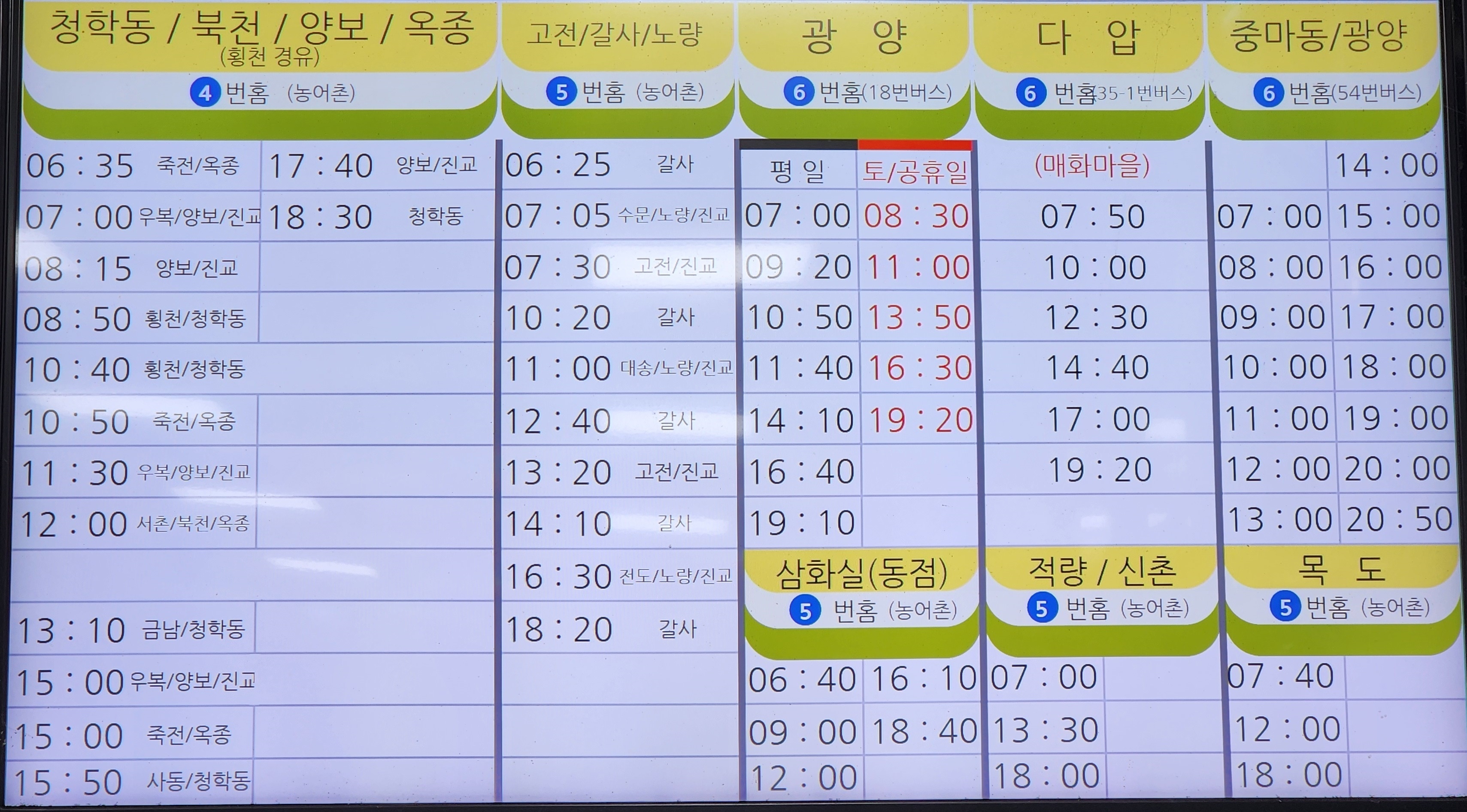 하동 출발 청학동, 북천, 양보, 옥종, 고전, 갈사, 노량, 광양, 다압, 중마동, 광양 방면.