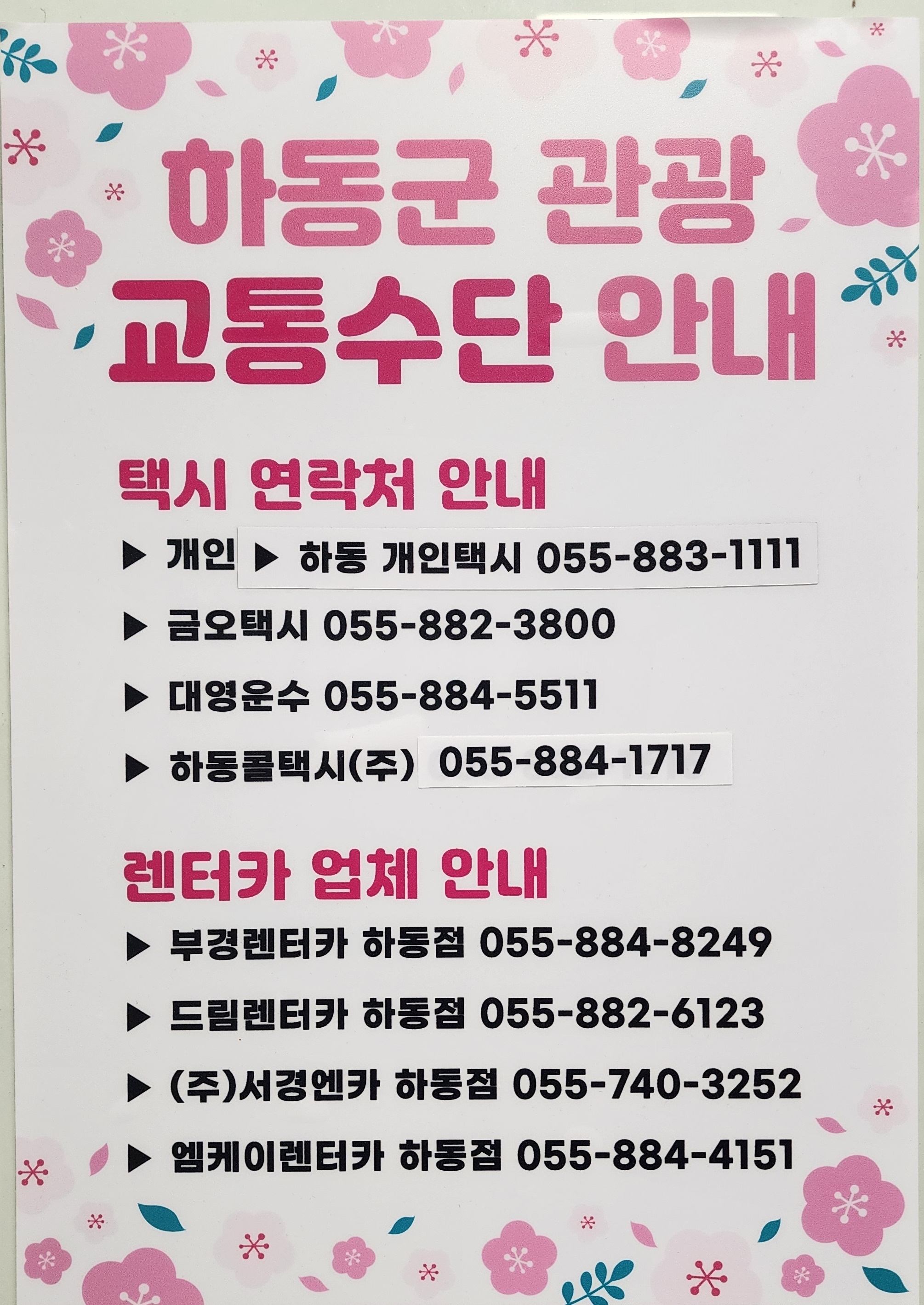 하동군 관광 교통수단 안내