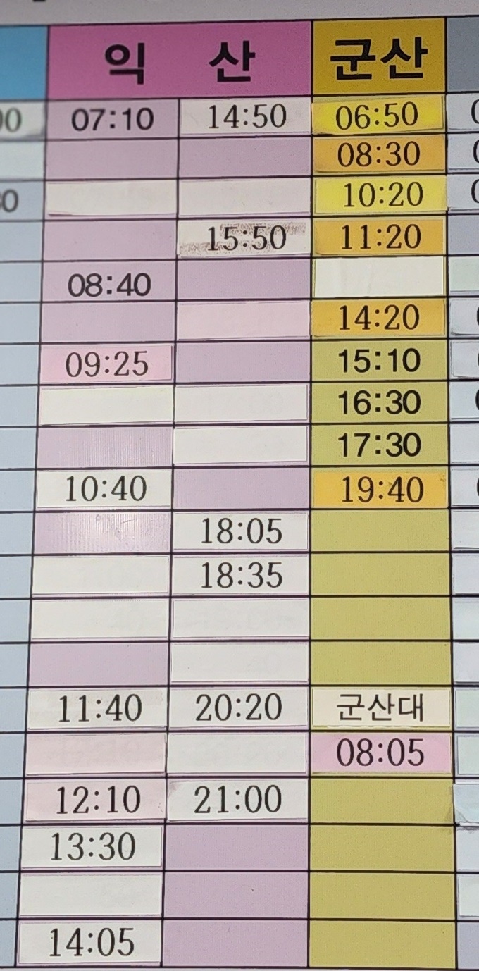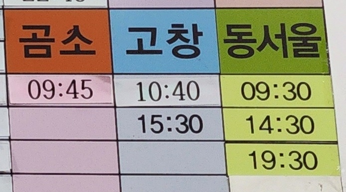 김체 출발 서울 방면 금호고속 센트럴시티 시간표