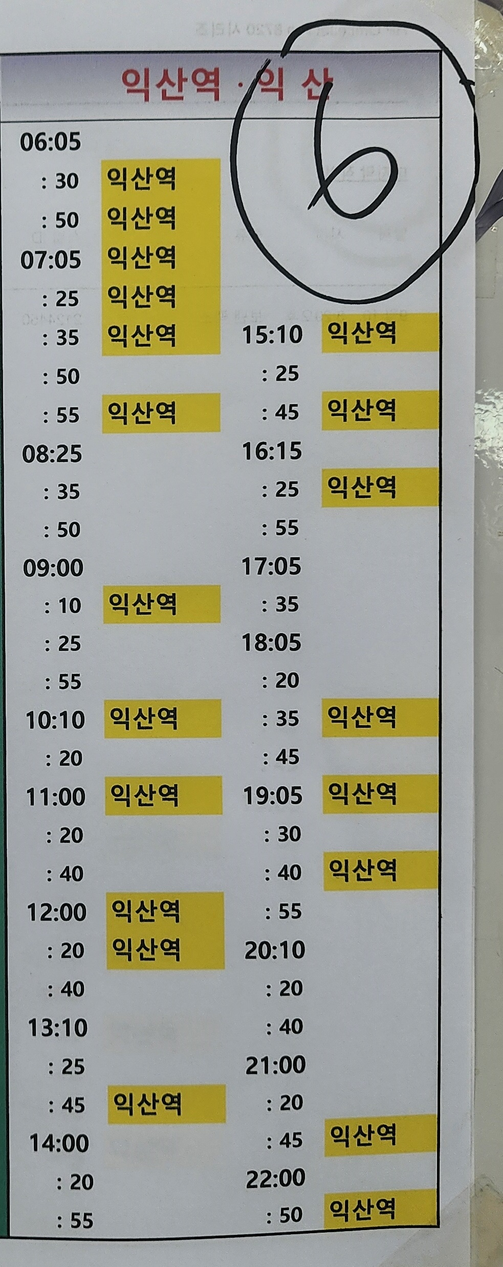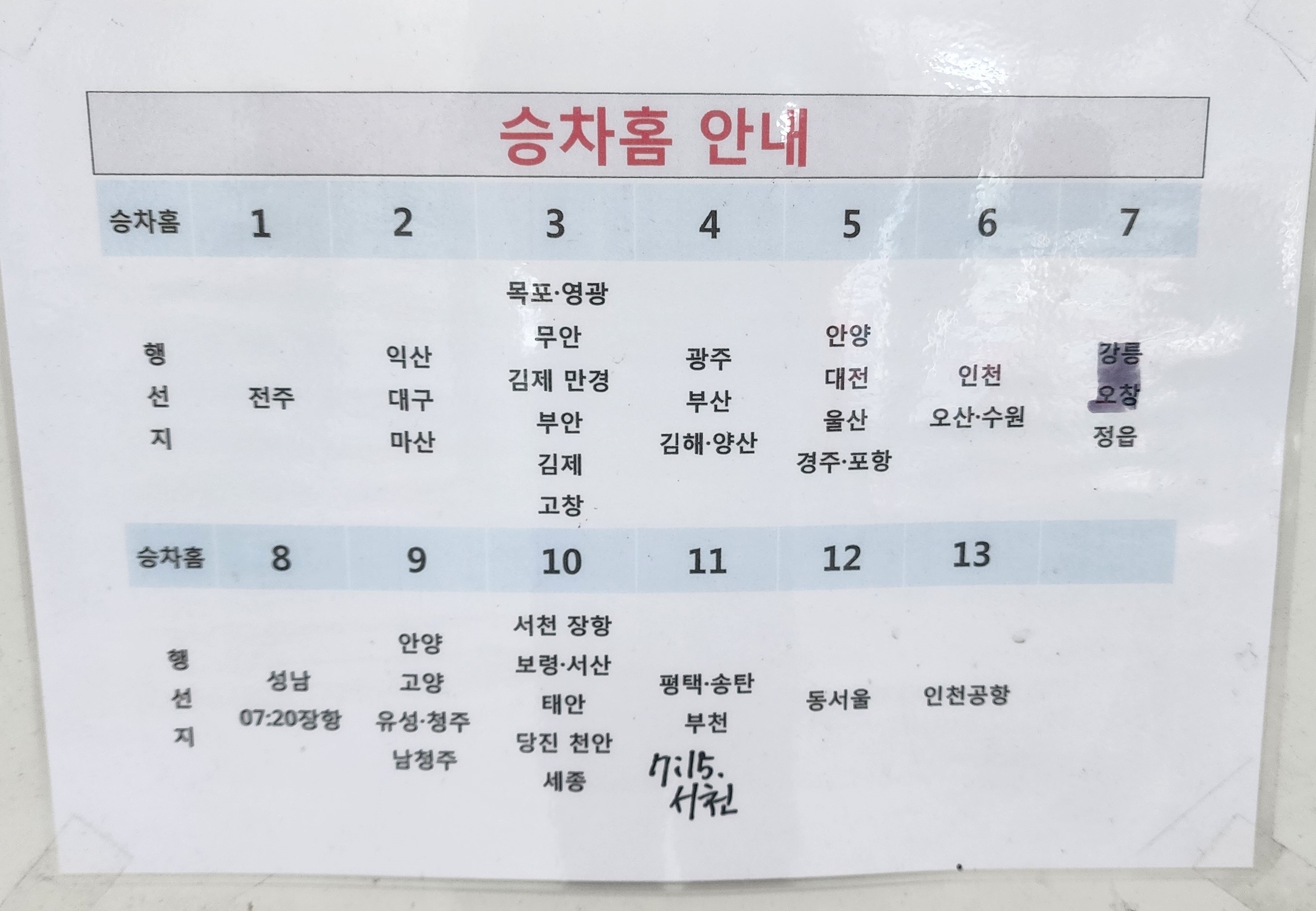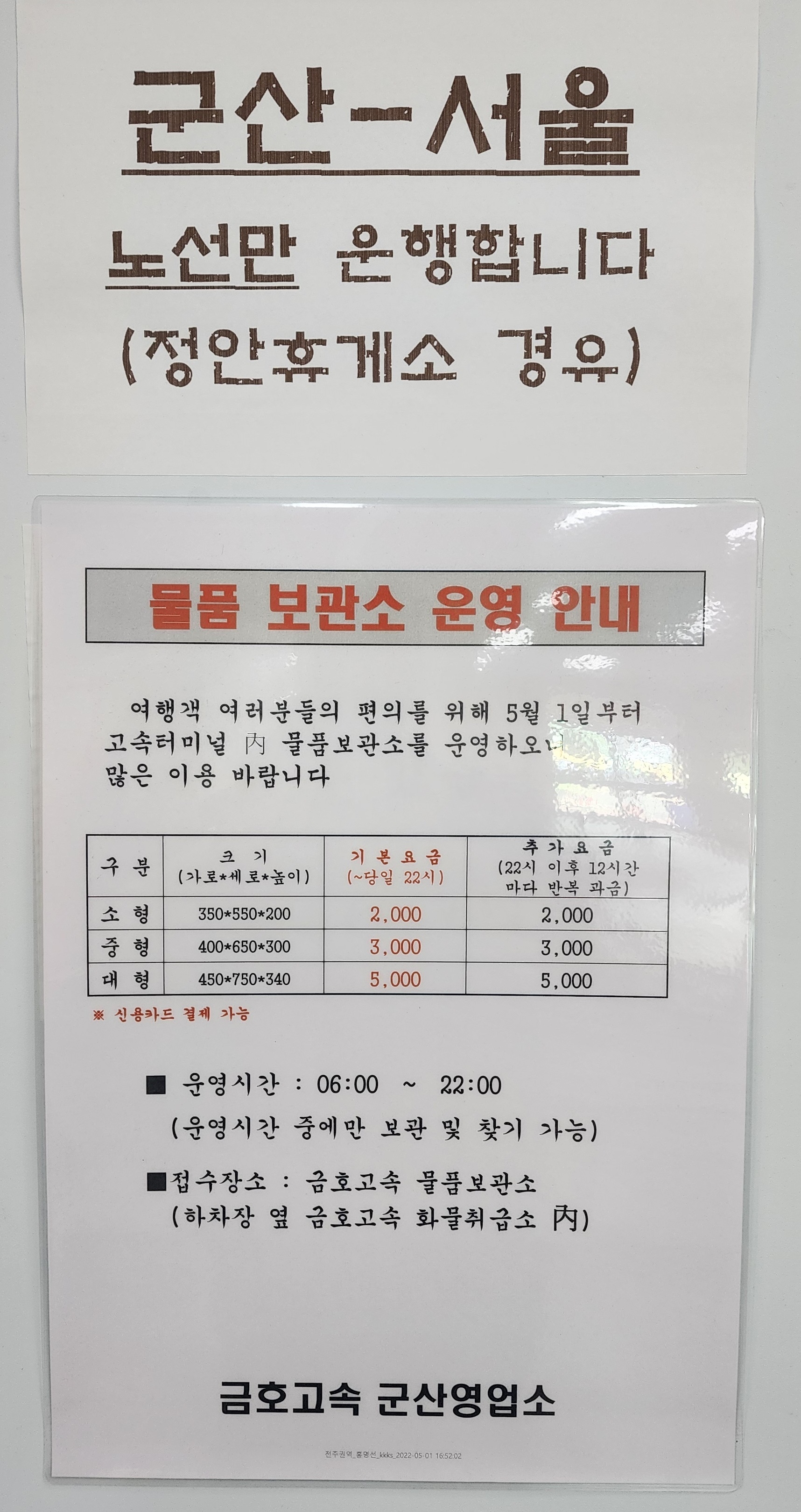 군산 출발 부산, 대구, 김해, 양산, 경주, 포항, 마산, 울산 방면.