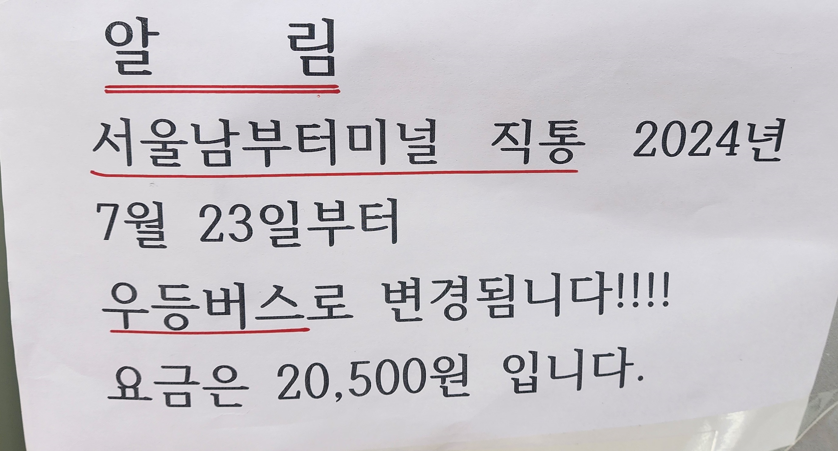 공주, 서울남부, 천안, 군산, 주산, 웅천, 보령 방면.