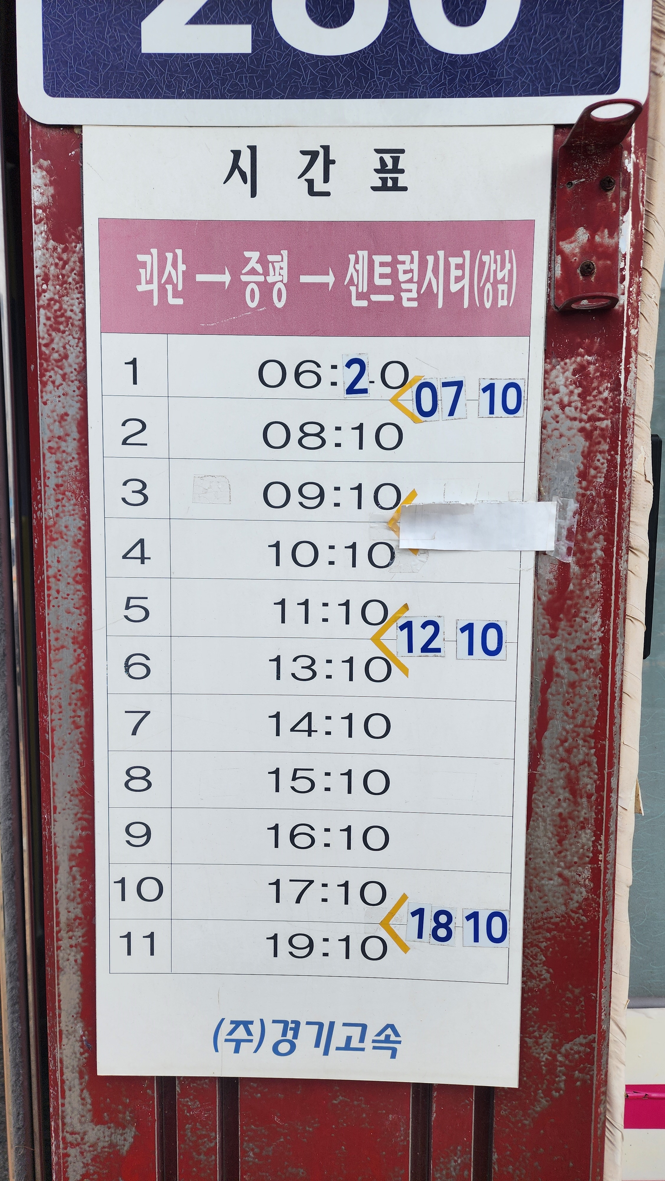 괴산 시외버스터미널 요금표