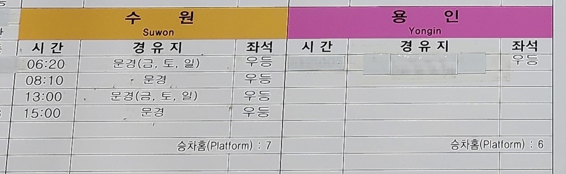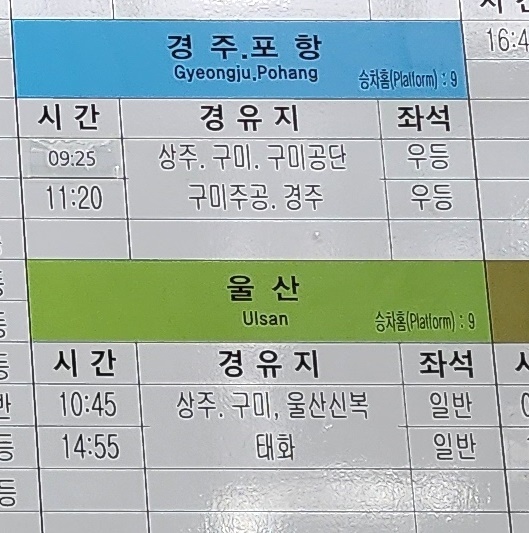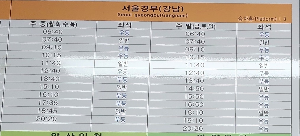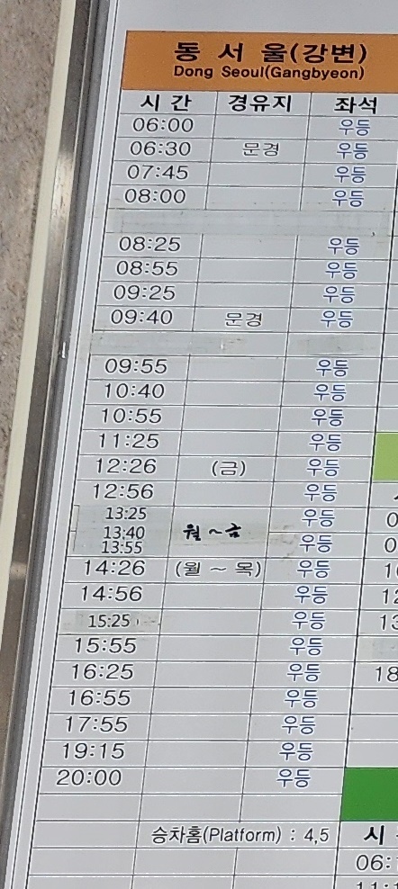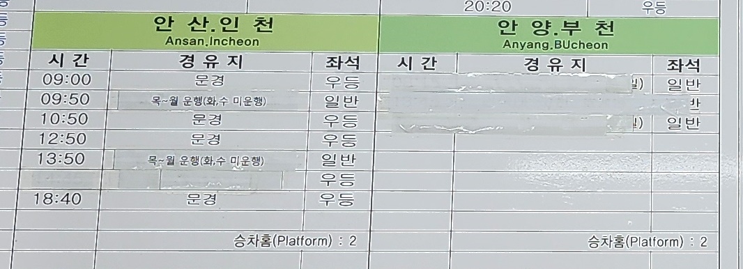 점촌 출발 안산, 인천, 안양, 부천 방면.