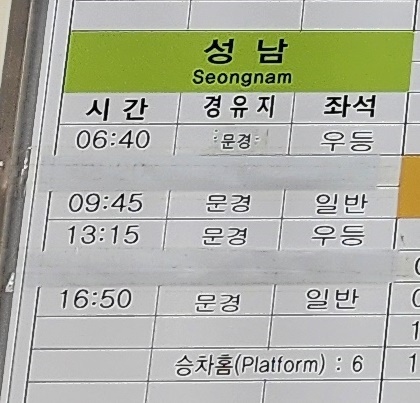 점촌 출발 안산, 인천, 안양, 부천 방면.