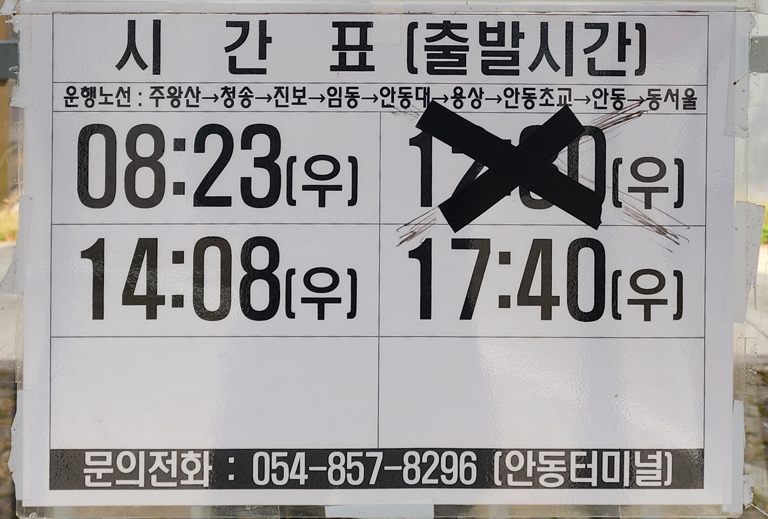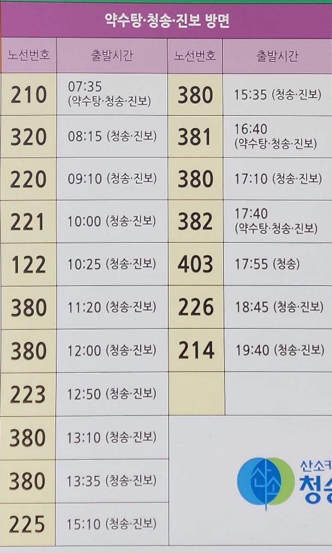 청송 주왕산 출발 약수탕, 청송, 진보 방면.