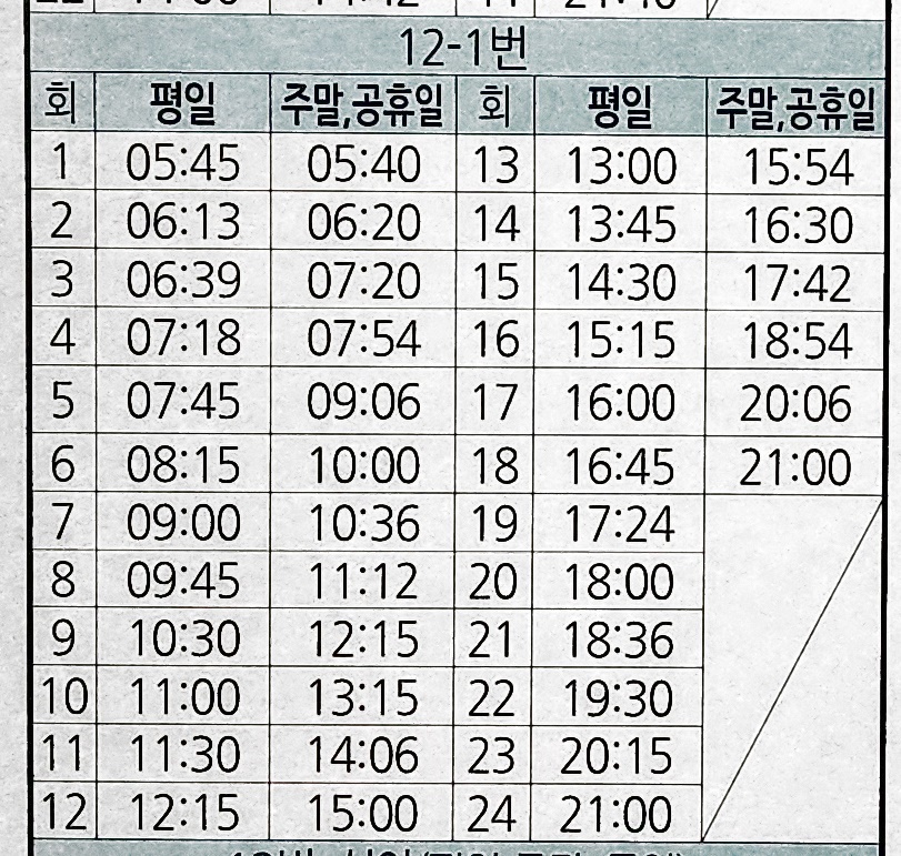 신평 출발 부산 명륜역 방면 12번 12-1번 심야 시간표