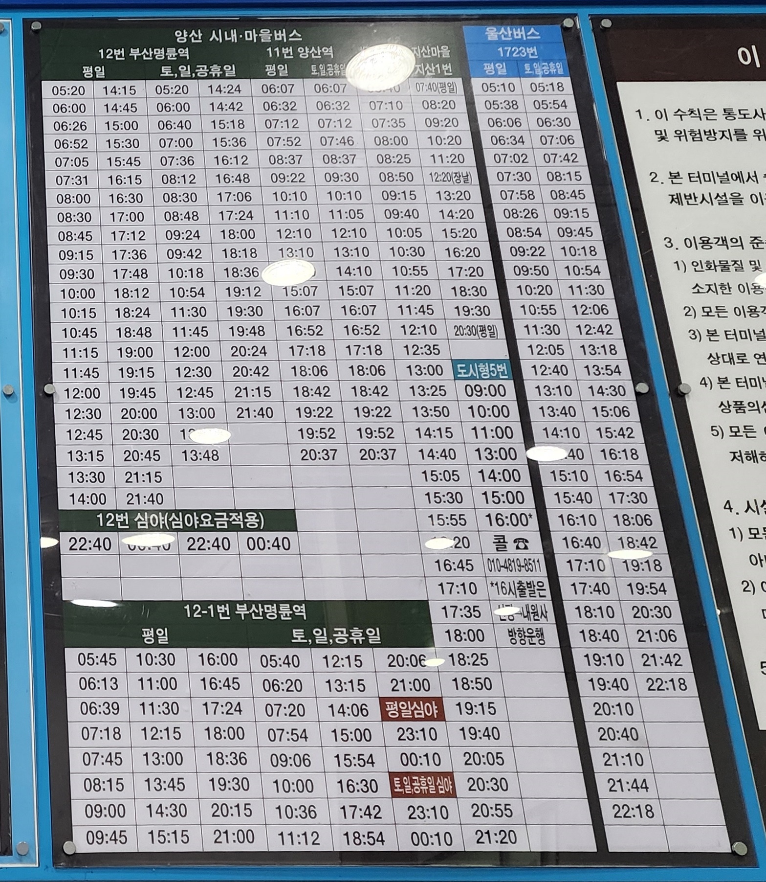 신평 출발 부산 명륜역 방면 12번 12-1번 심야 시간표