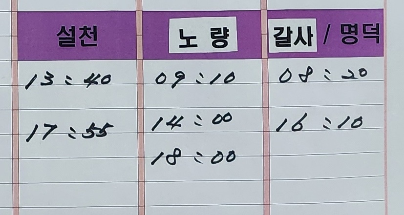 진교 출발 설천, 노량, 갈사, 명덕 방면.