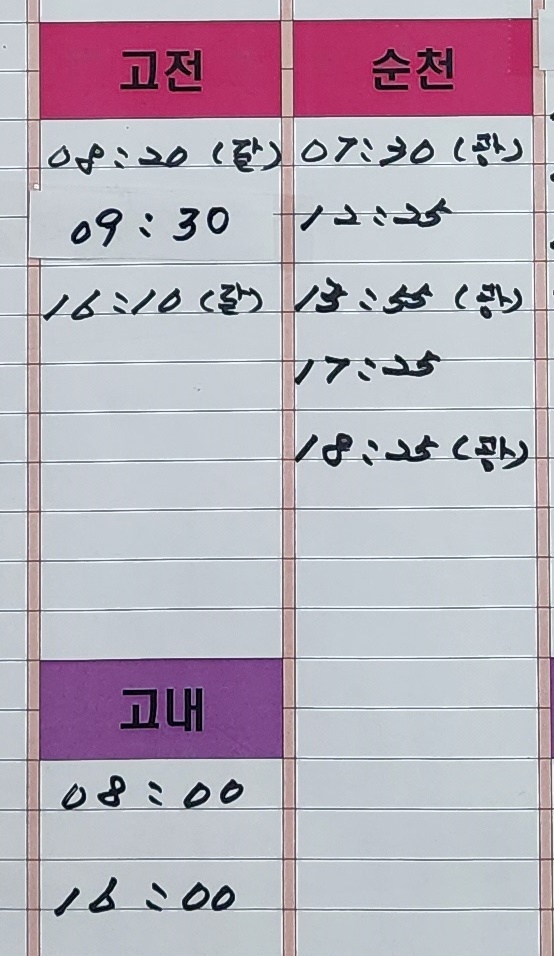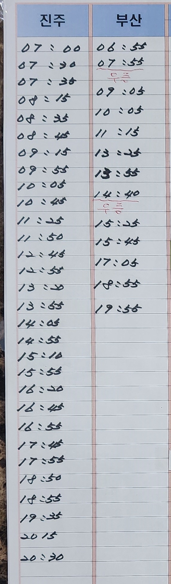진교 출발 남해, 서울, 양보, 대전, 술상, 원운 방면.