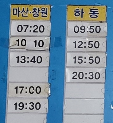 곤양 출발 석문, 만정, 성방, 완사 방면.