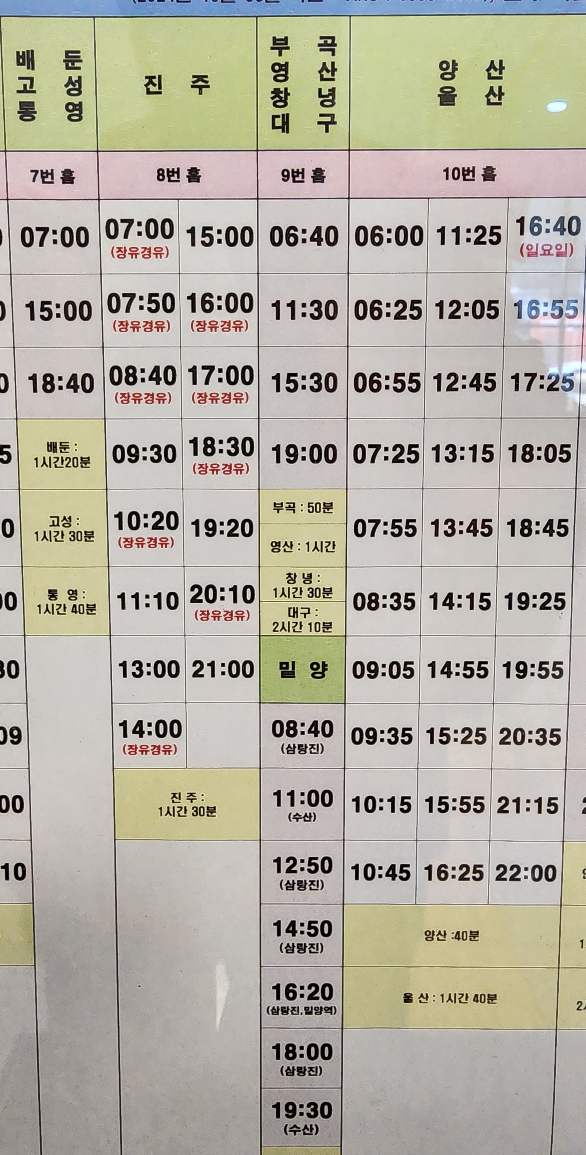 김해 출발 배두느 고성, 통영, 진주, 부곡, 영산, 창녕, 대구, 양산, 울산, 밀양 방면.