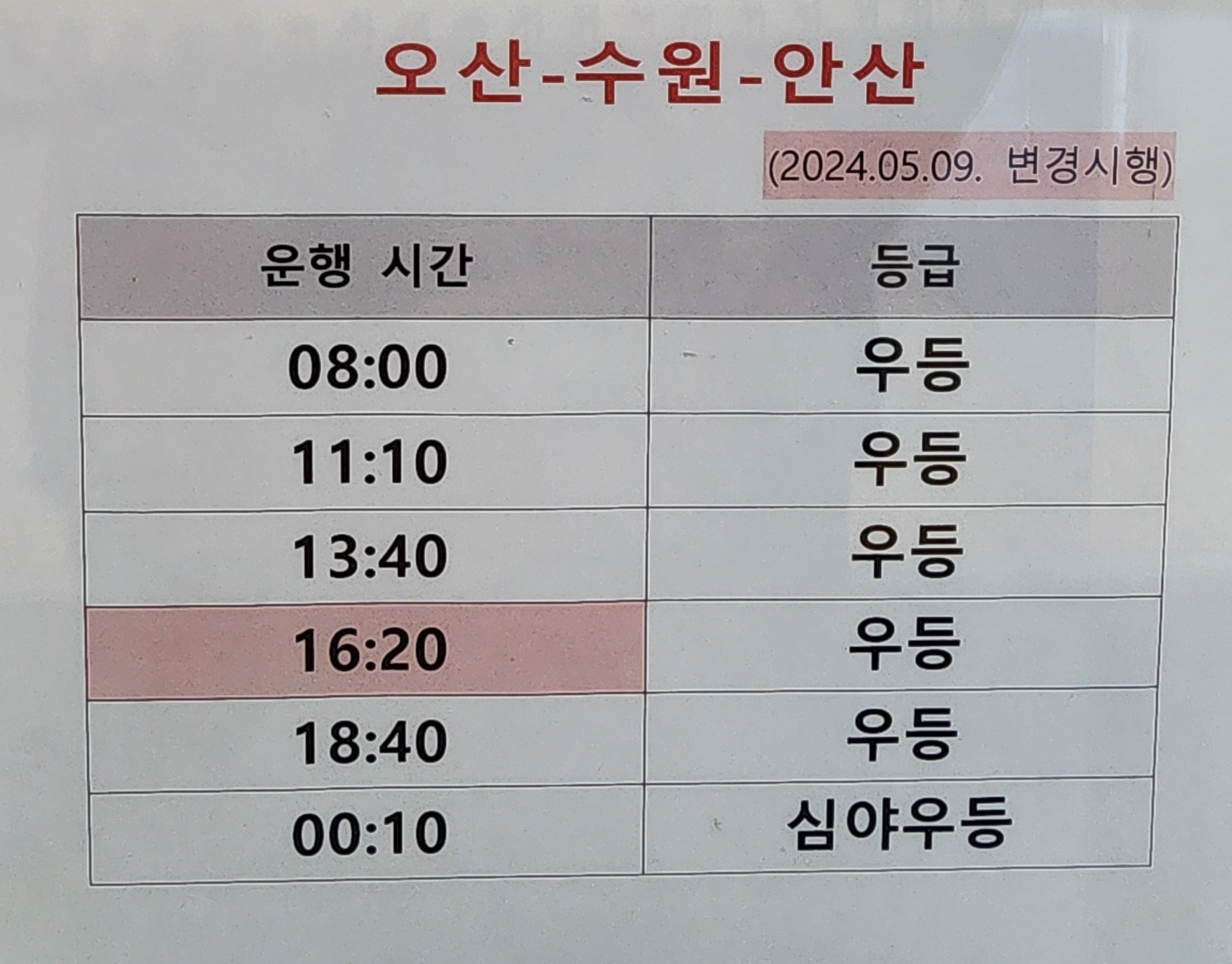 김해 출발 오산, 수원, 안산 방면.