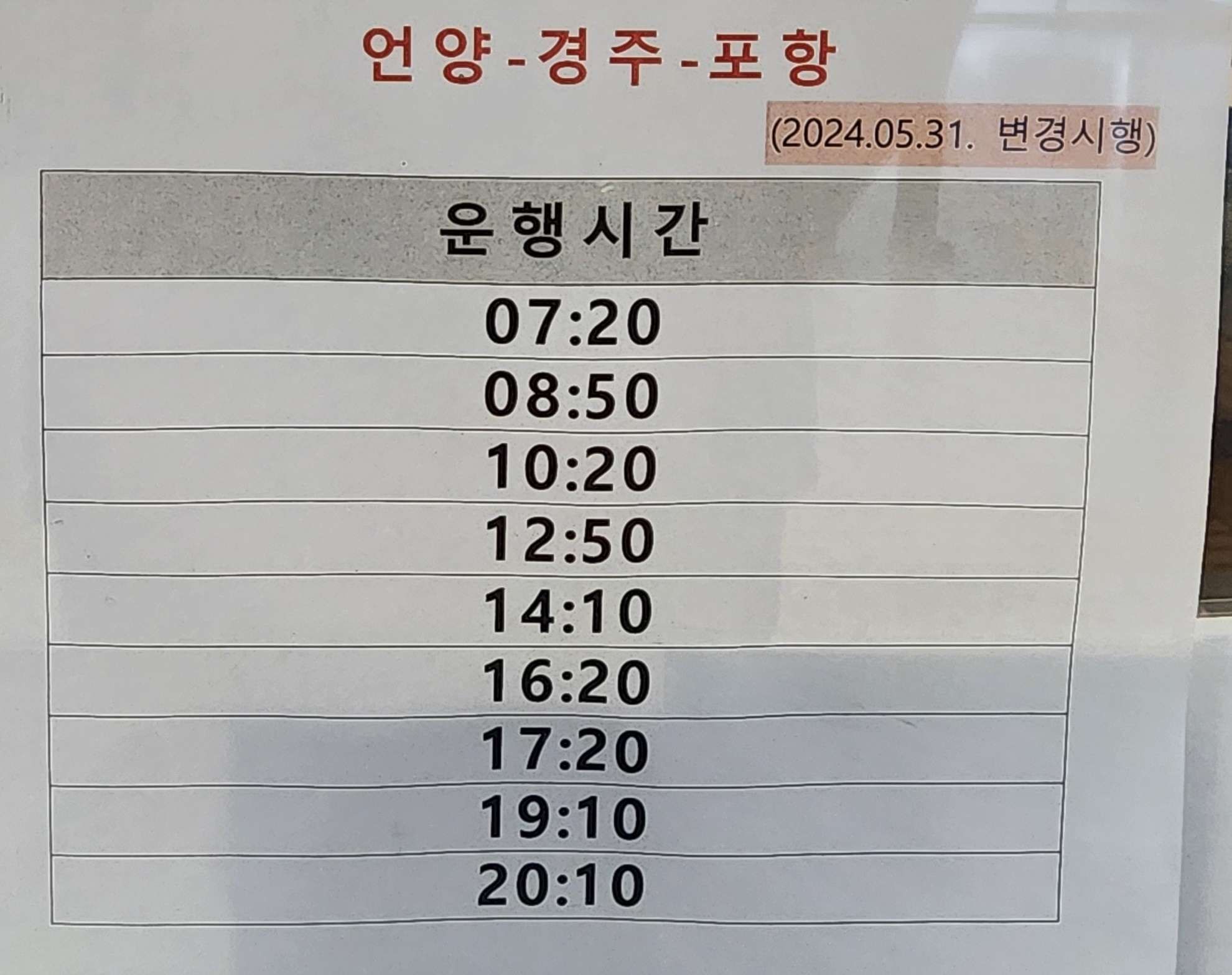 김해 출발 언양, 경주, 포항 방면.