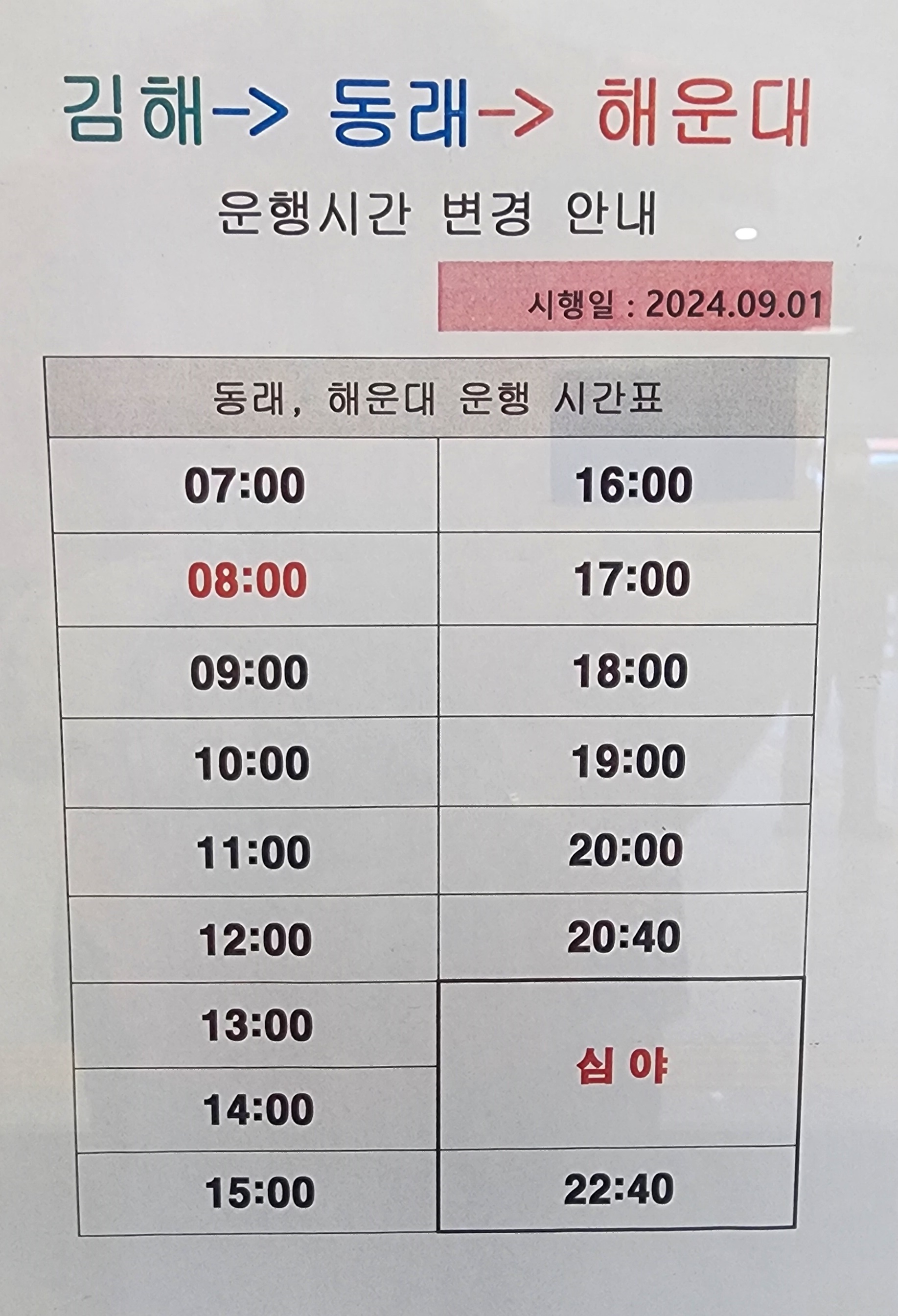 김해 출발 동래, 해운대 방면.
