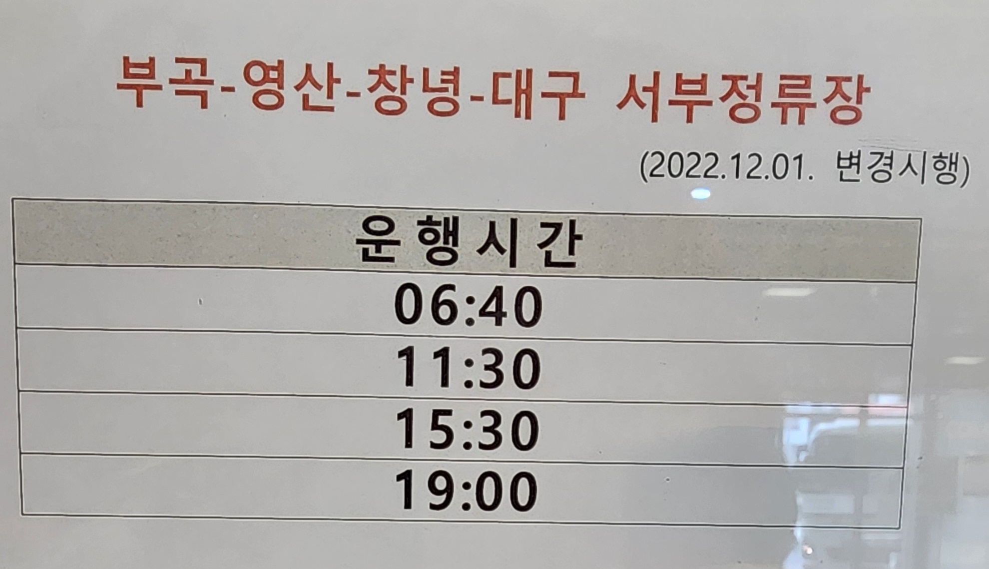 김해 출발 부곡, 영산, 창녕, 대구 서부정류장 방면.