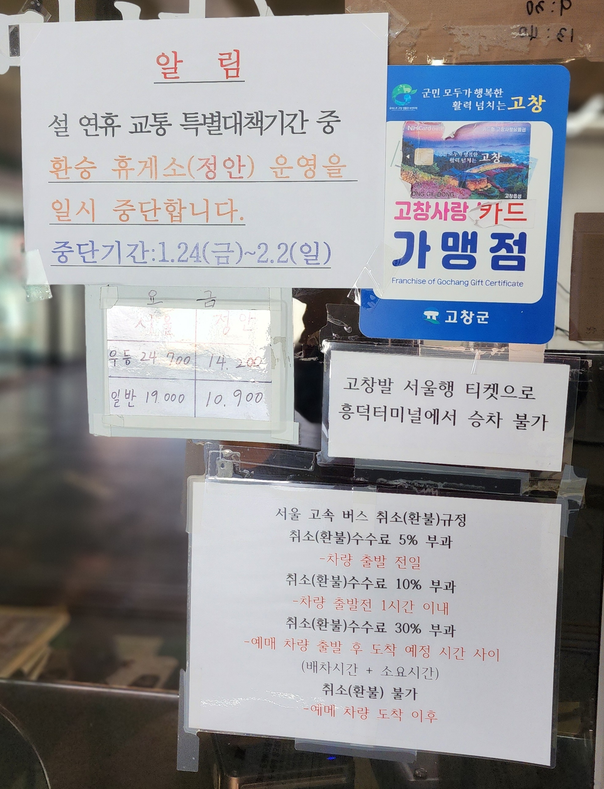 고창 출발 줄포, 부안, 대야, 김제, 군산, 익산 방면.