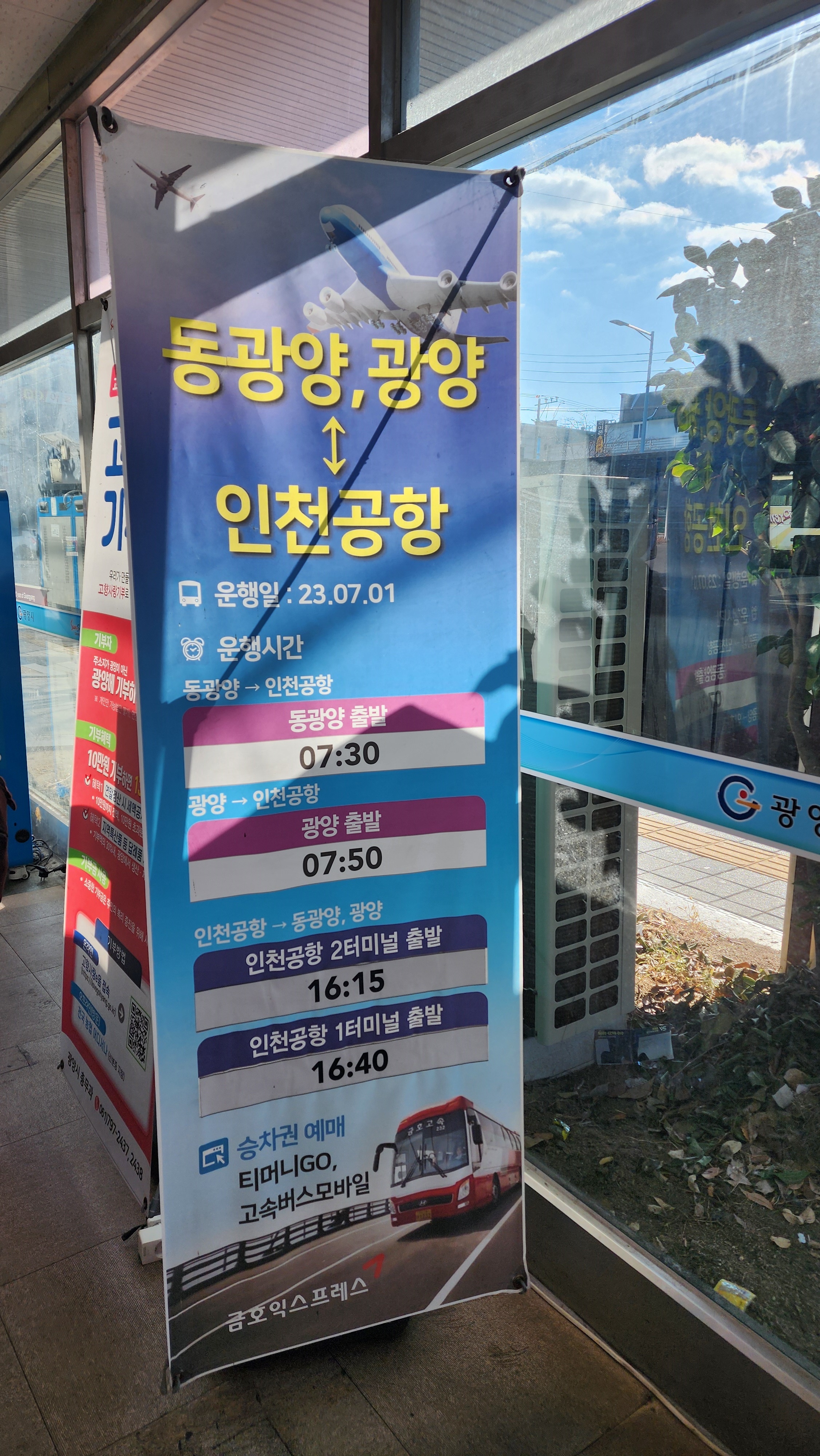 동광양 출발 서울 센트럴, 정안, 인천공항, 안산, 인천, 광주, 순천, 통영, 광영 방면.