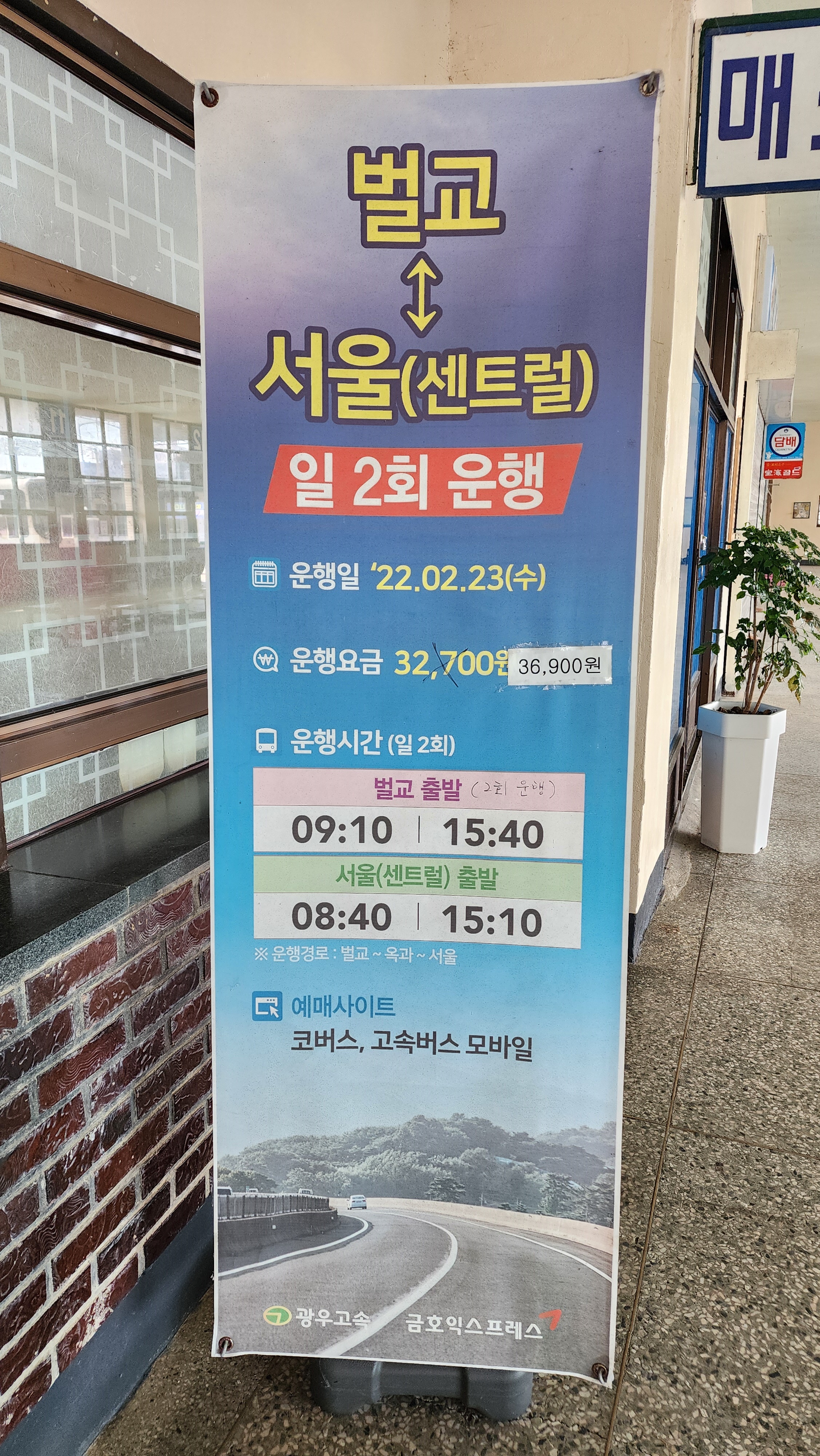 벌교 출발 서울 강남 센트럴시티 방면.