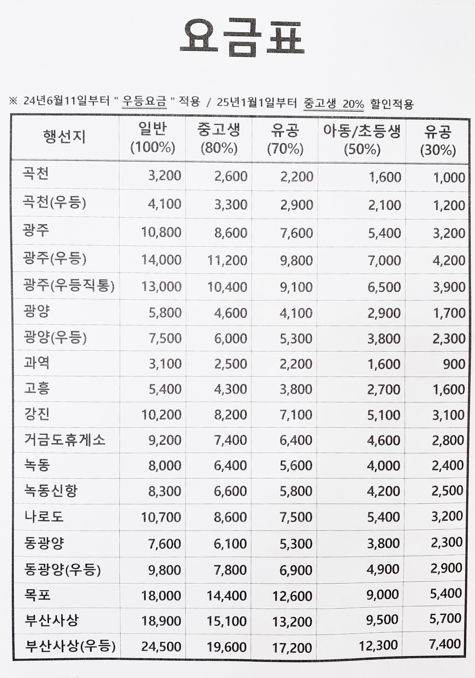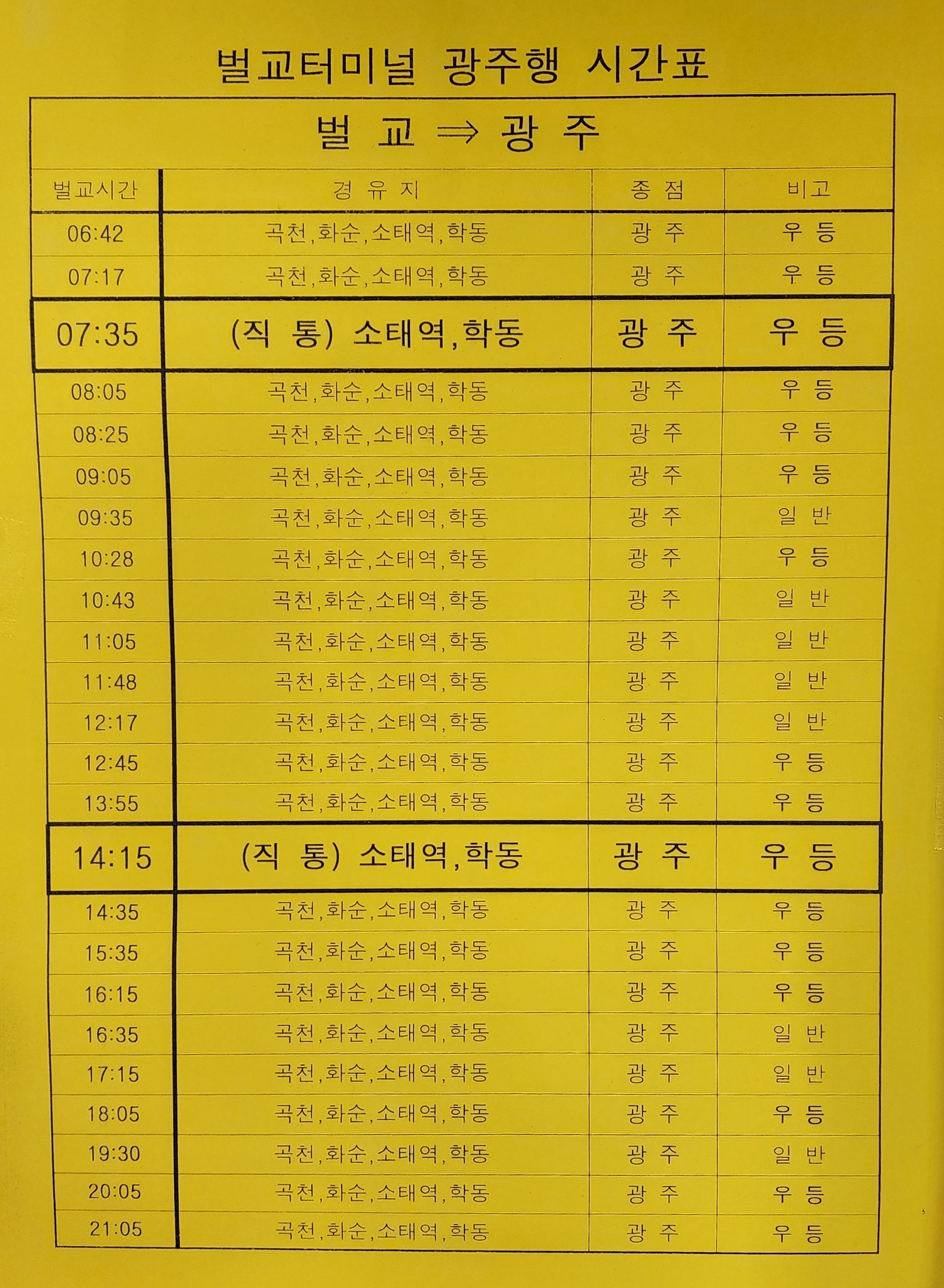 벌교 출발 곡천, 환순, 소태역, 학동, 광주 방면.