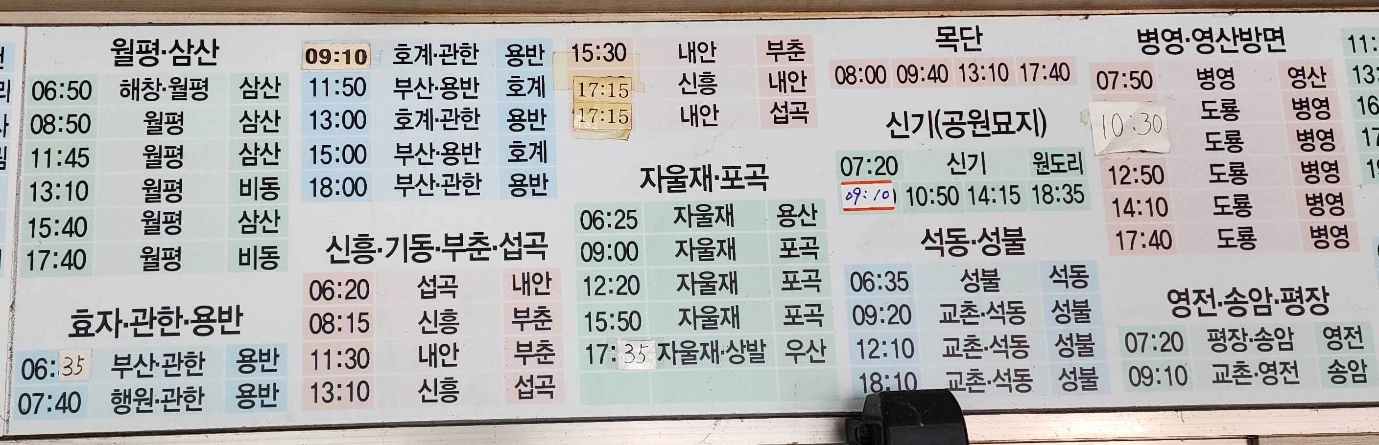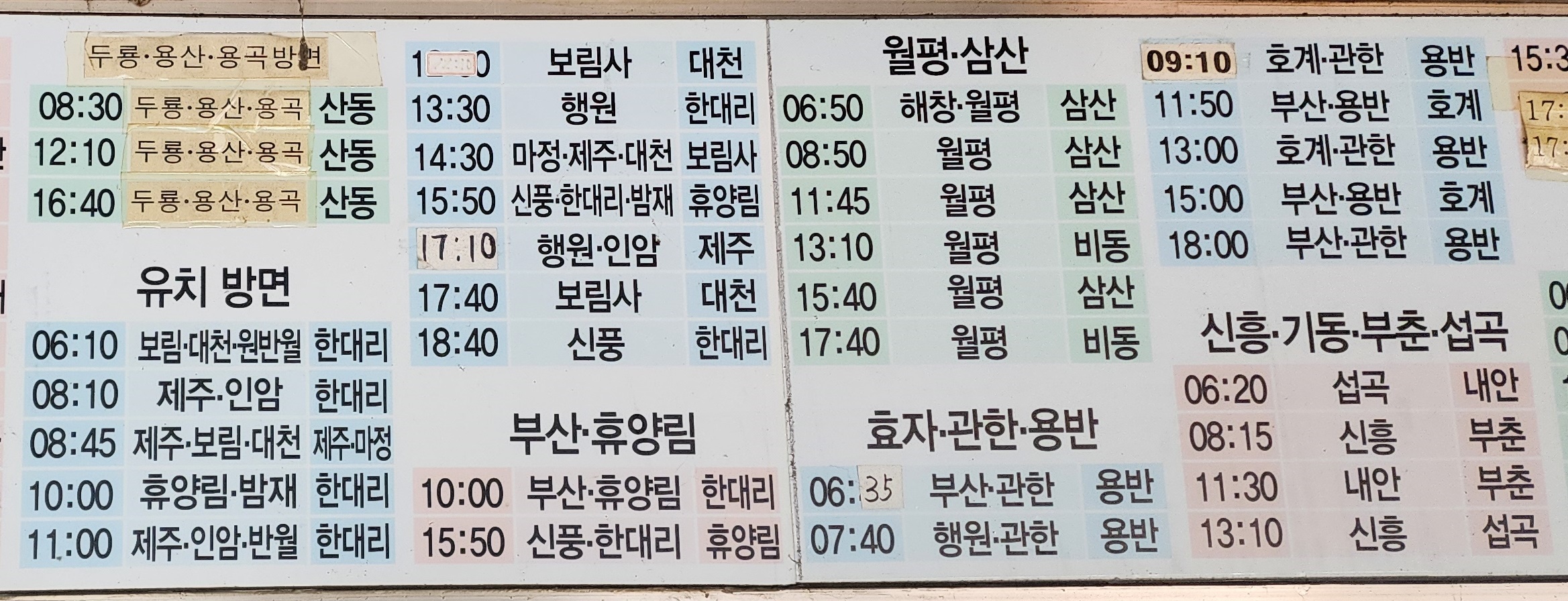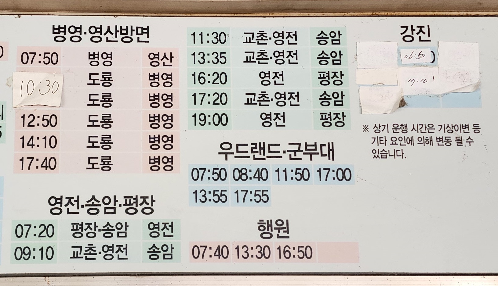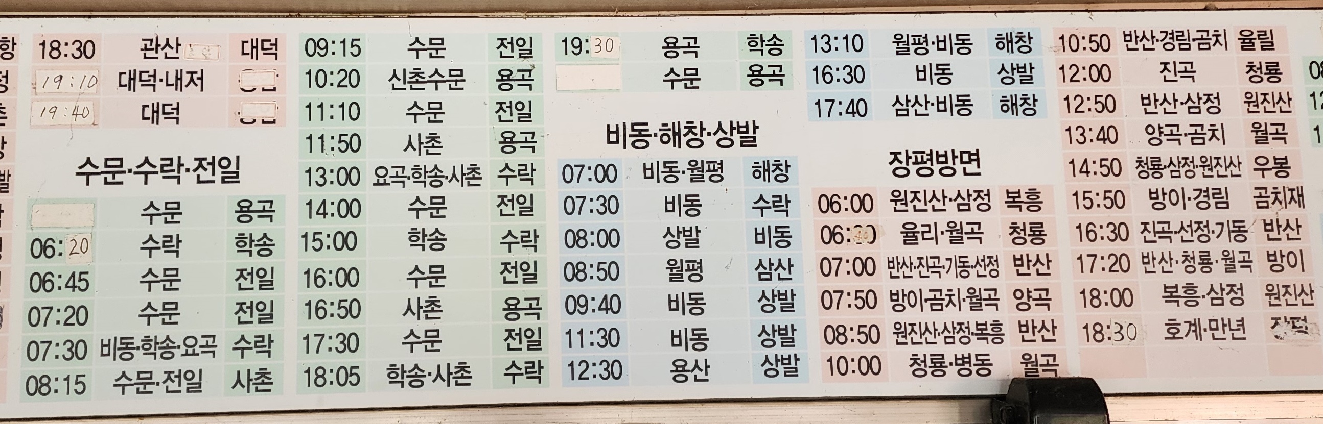 장흥 출발 광주, 용산, 관산, 대덕, 회진 방면.