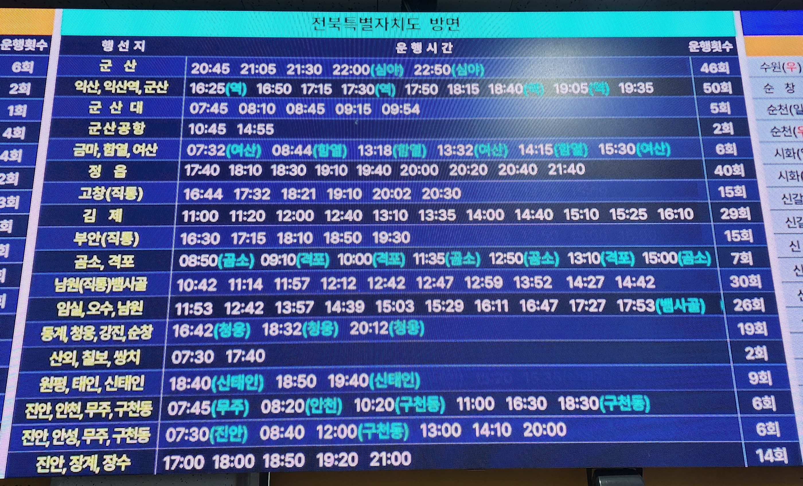 전주시외버스터미널 시간표