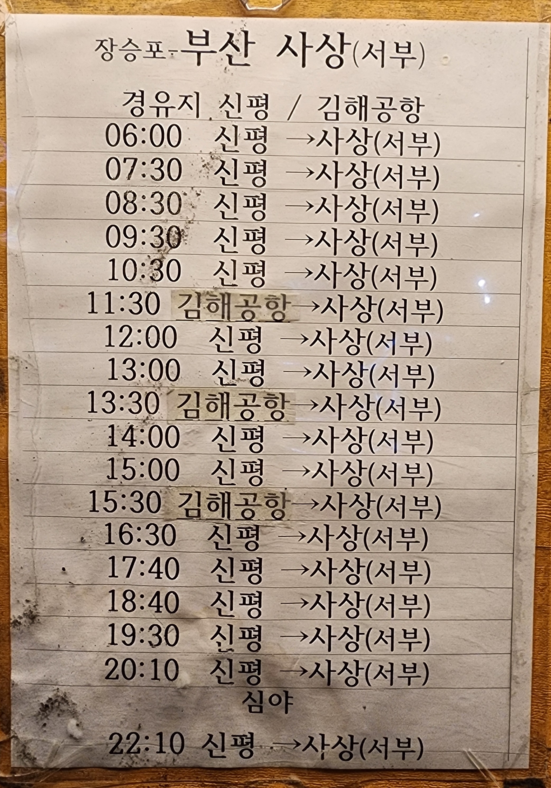 장승포 출발 부산 사상 서부, 신평, 김해공항 방면.