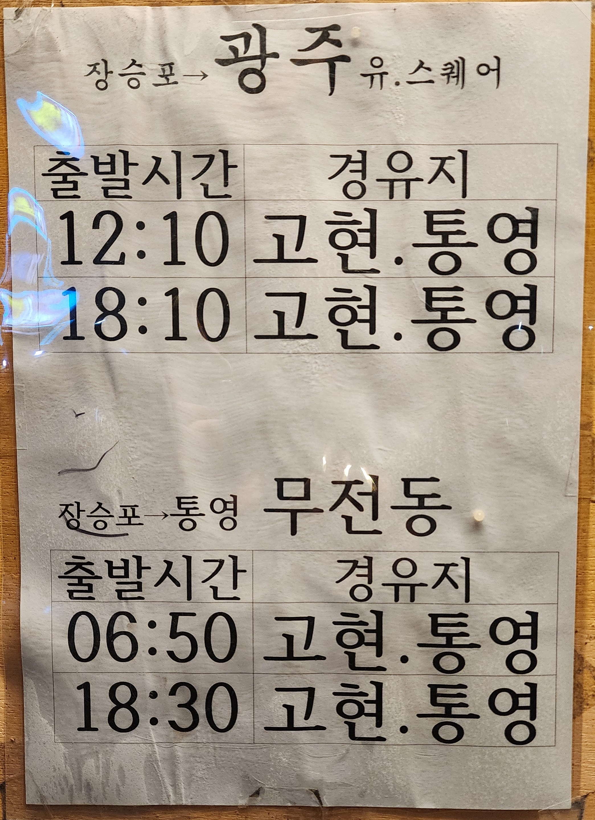 장승포 출발 광주 유스퀘어, 무전동 방면.