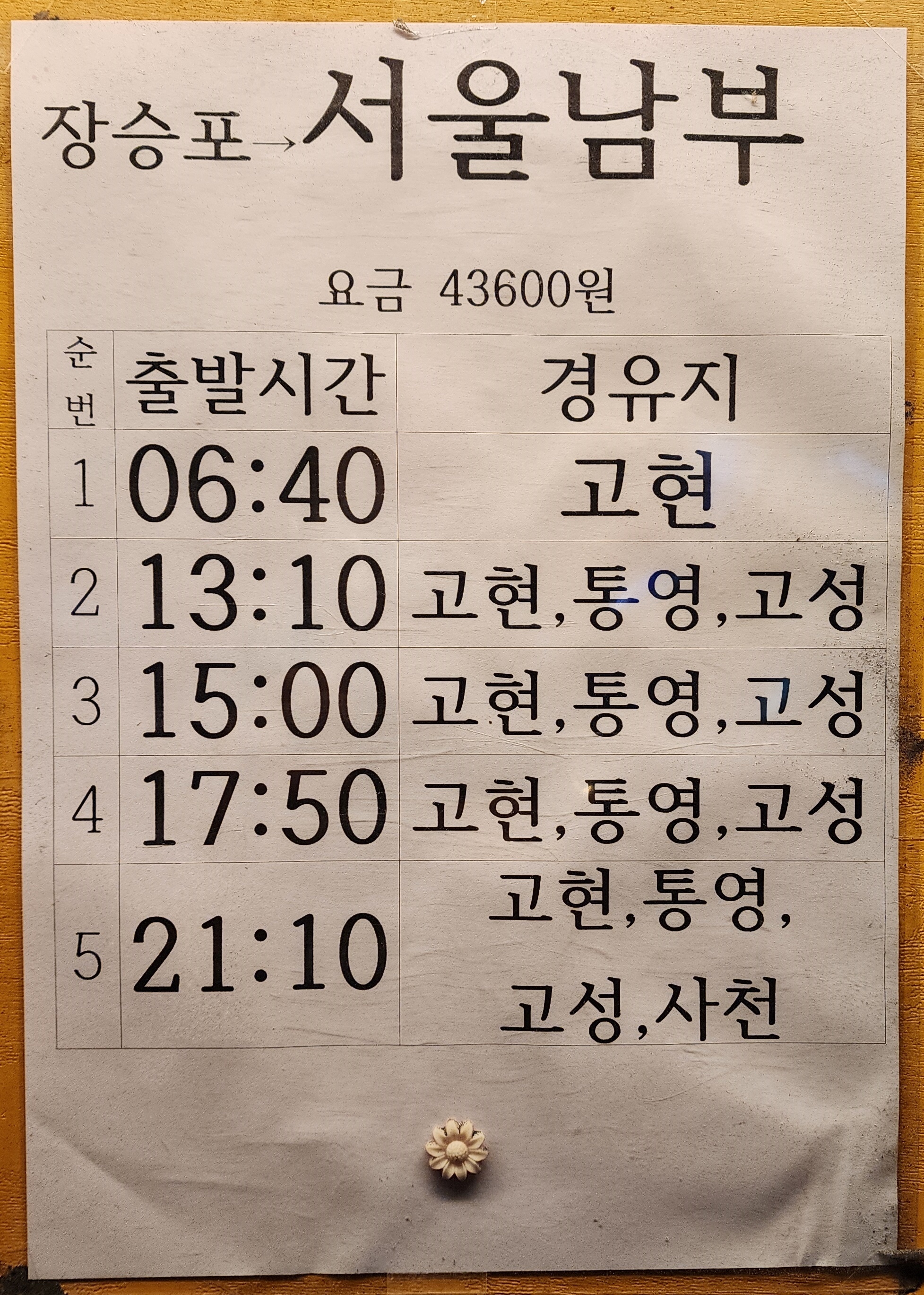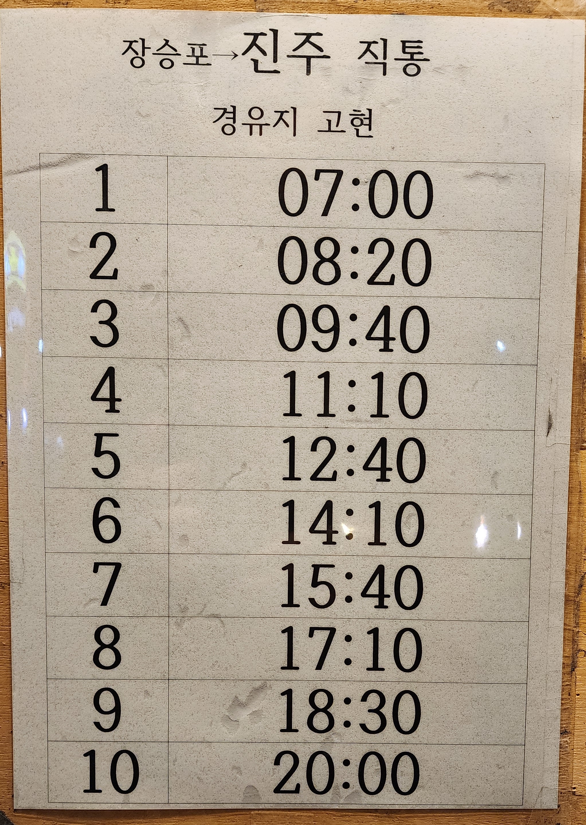장승포 출발 고현, 통영, 고성, 배둔, 진동, 사천, 창원, 남마산 방면.