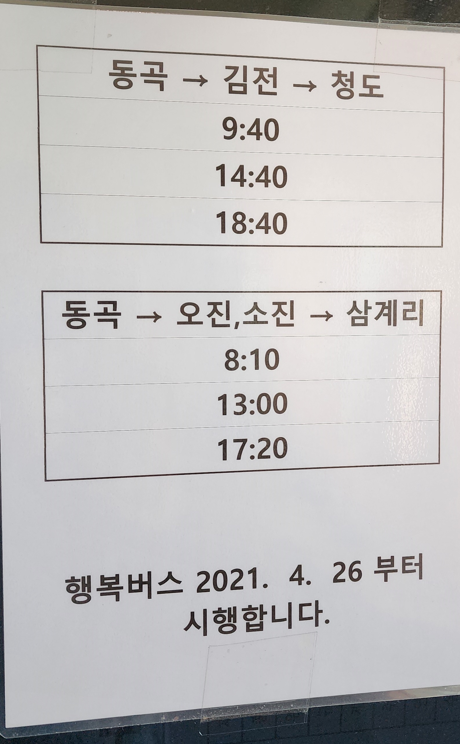 청도 동곡시외버스터미널 시간표