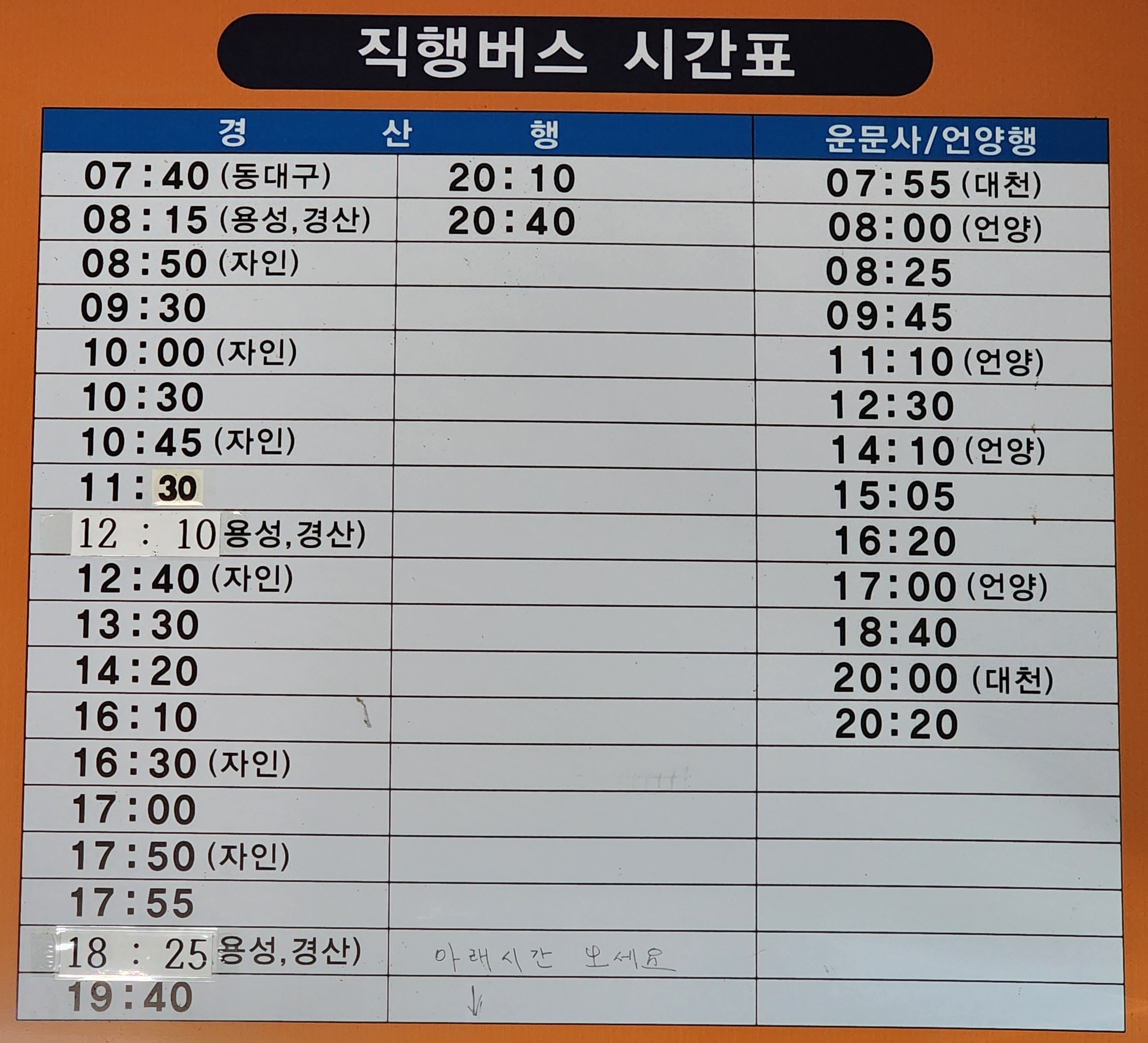 청도 동곡 출발 경산, 운문사, 언양 방면.