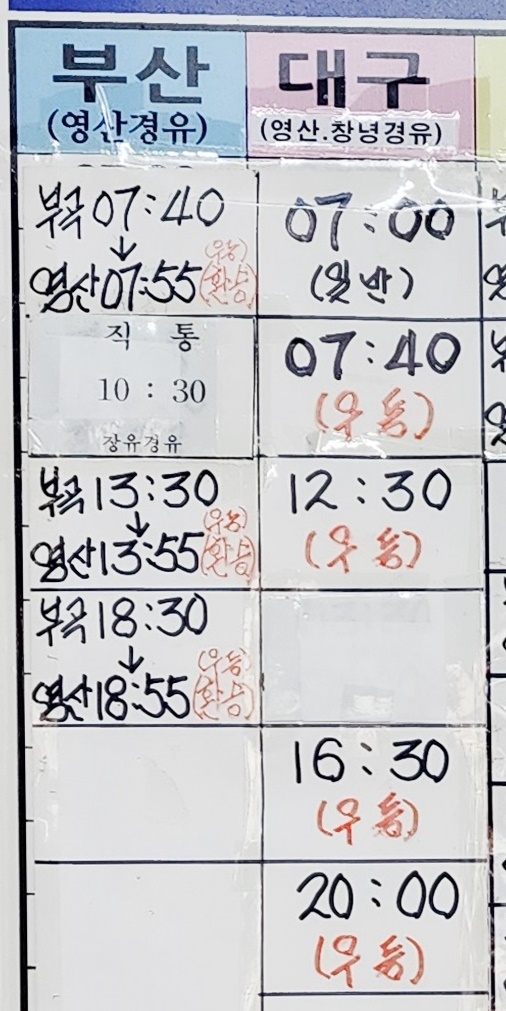 부곡 출발 부산, 영산 창녕, 대구 방면.