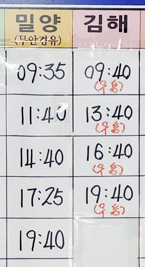 부곡 출발 밀양, 무안, 김해 방면.