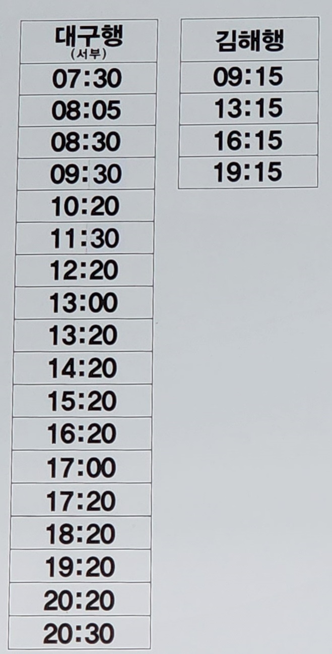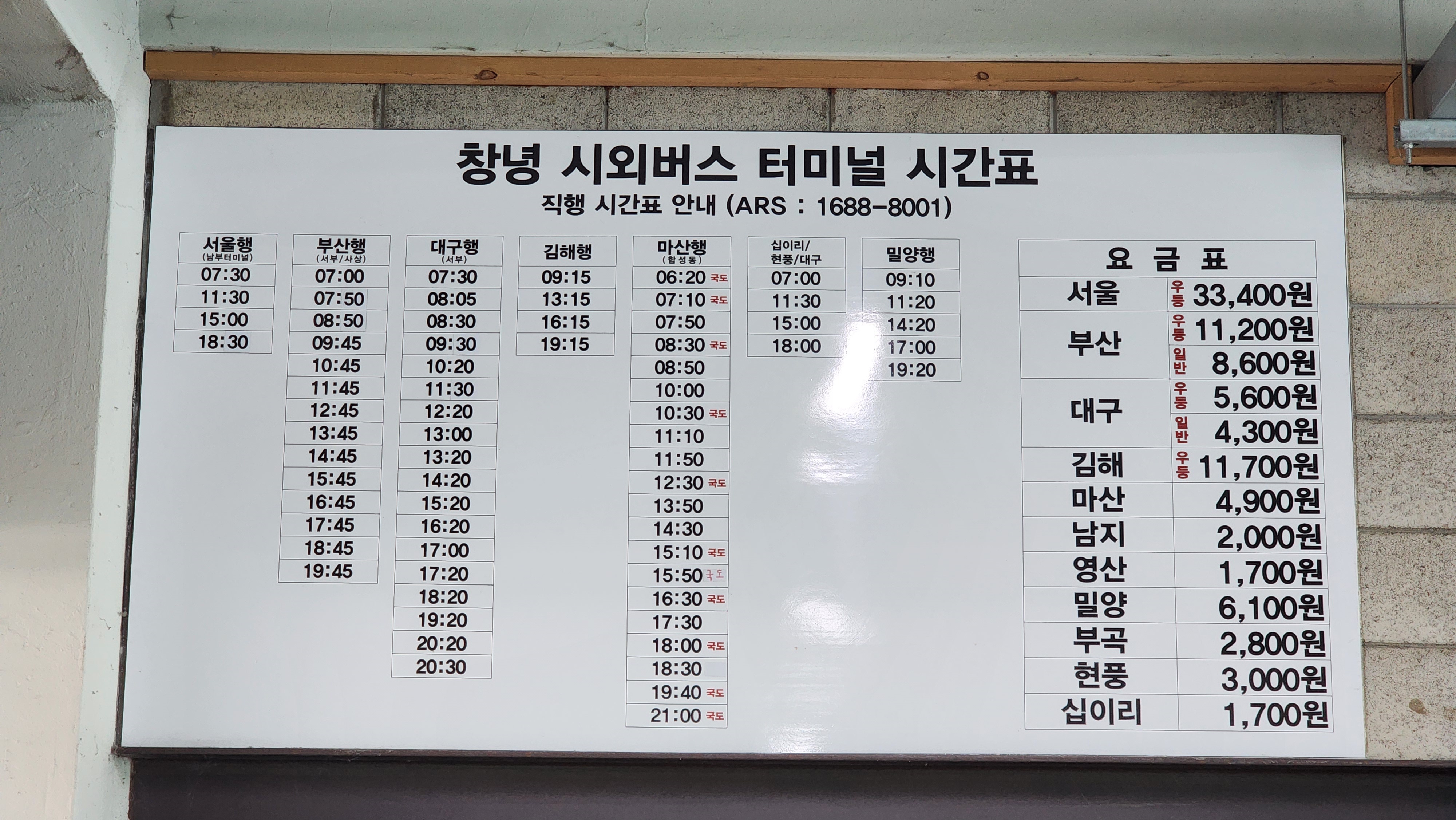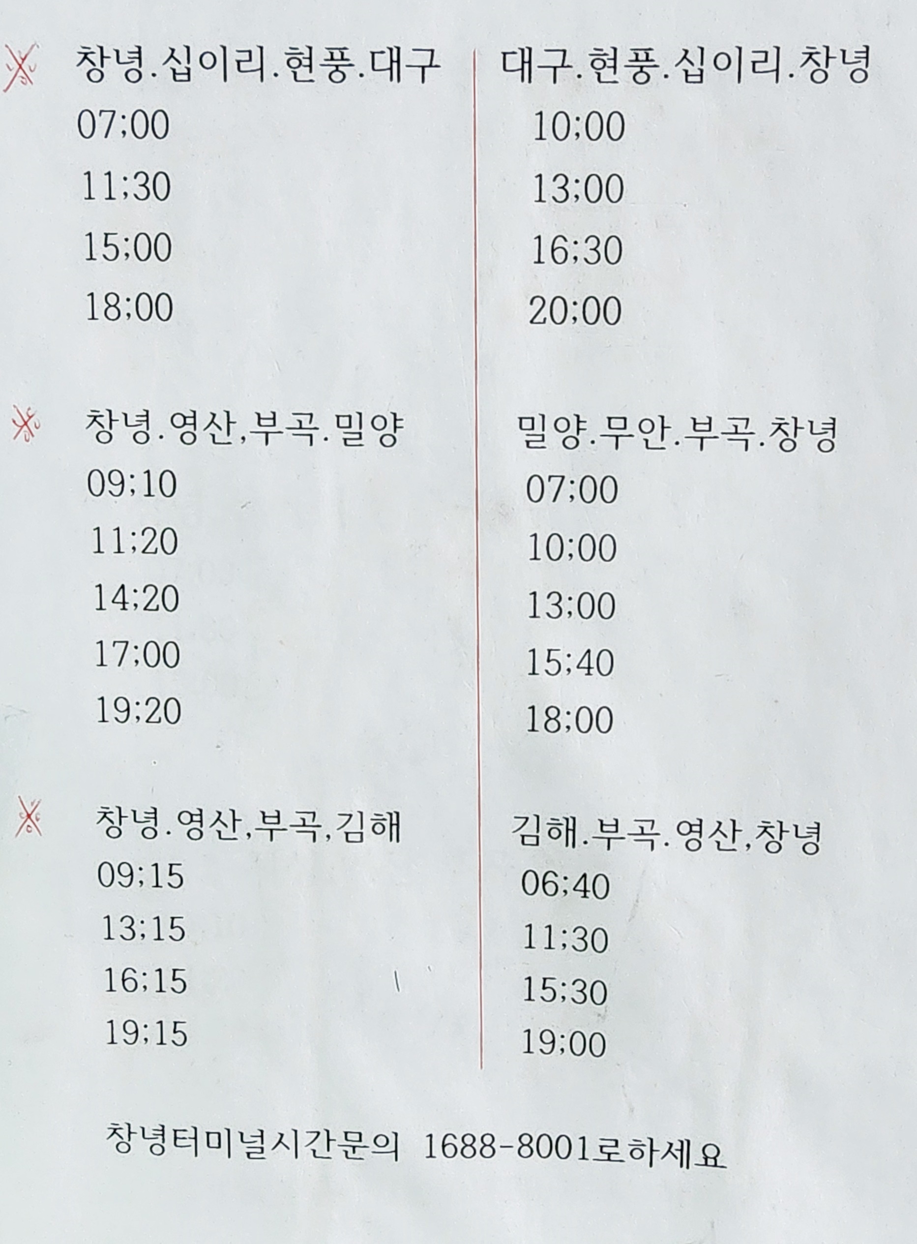 창녕 출발 마산, 합성동, 십이라, 현풍, 대구, 밀양 방면.