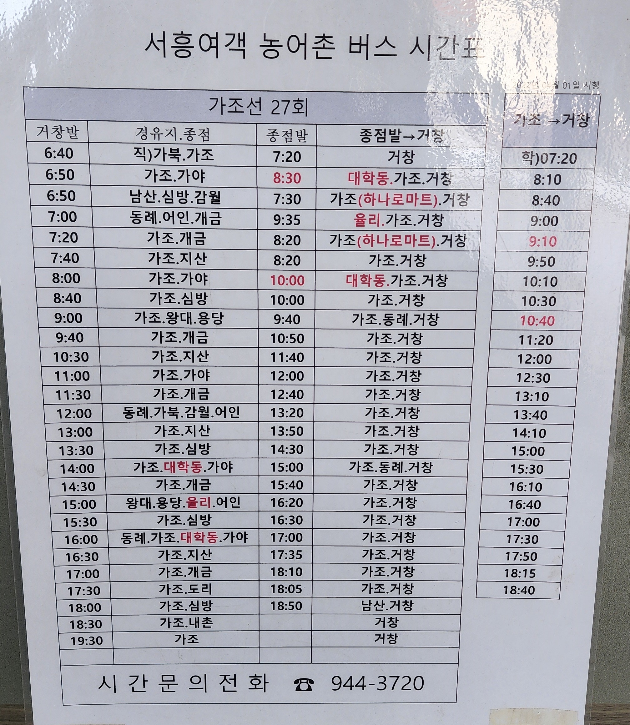 거창시내버스터미널 시간표 서흥여객 버스터미널